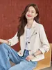 Jaqueta curta feminina estilo coreano pequena 2024 primavera e outono temperamento de alta qualidade feminino manga de sete pontas terno casual