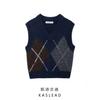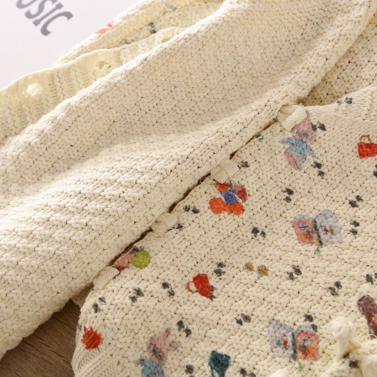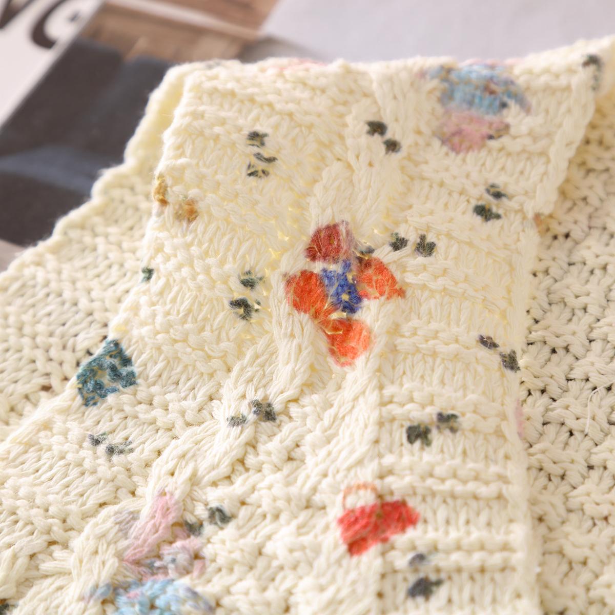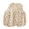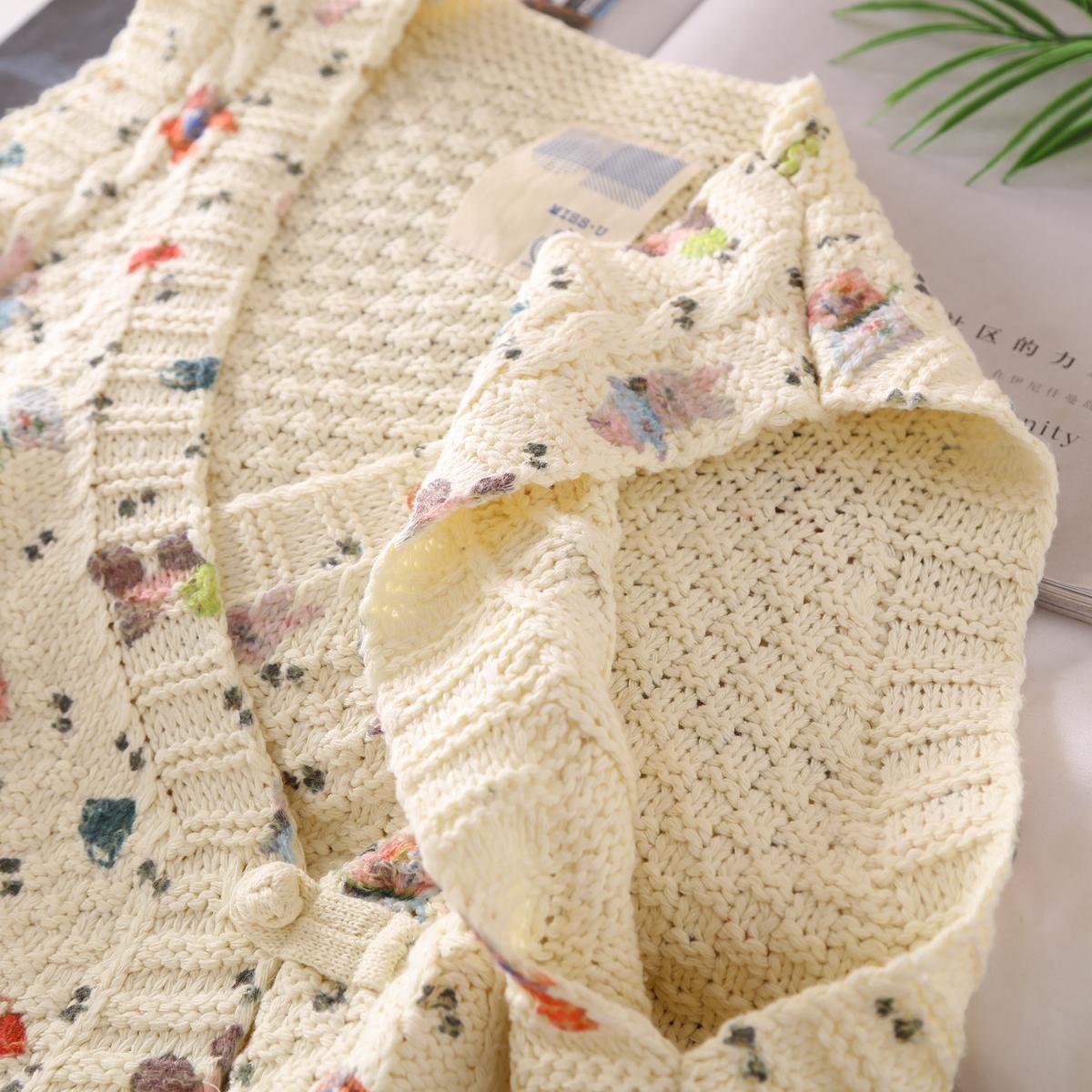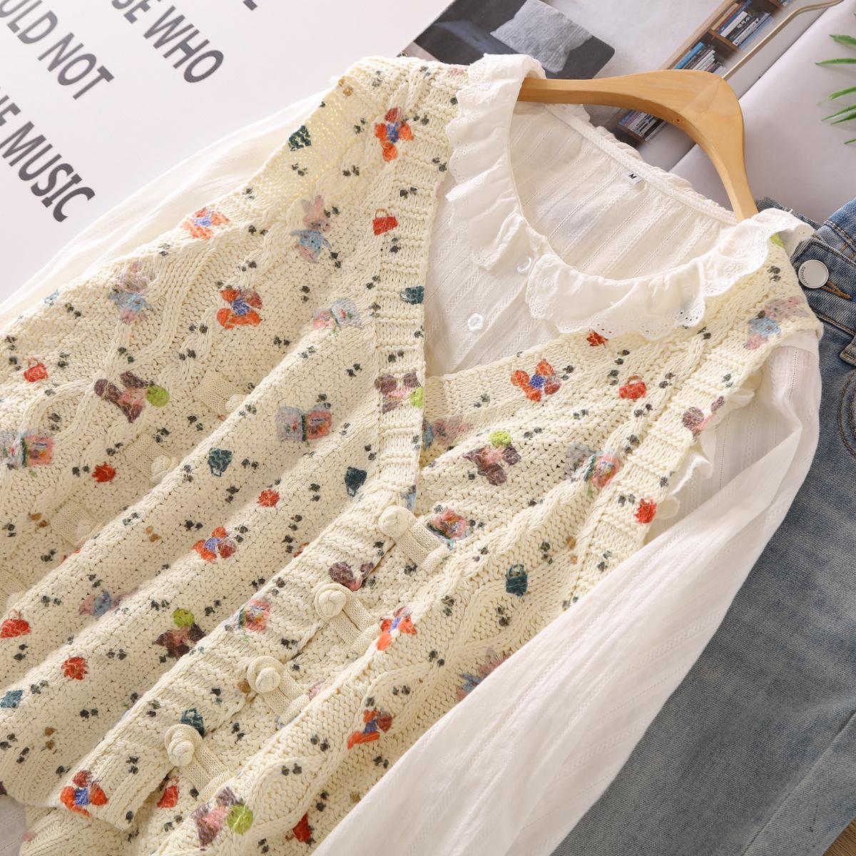 Colete retrô artístico com estampa pastoral fresca de outono de 2024, decote em V, novo colete de malha de algodão para todos os gostos
