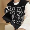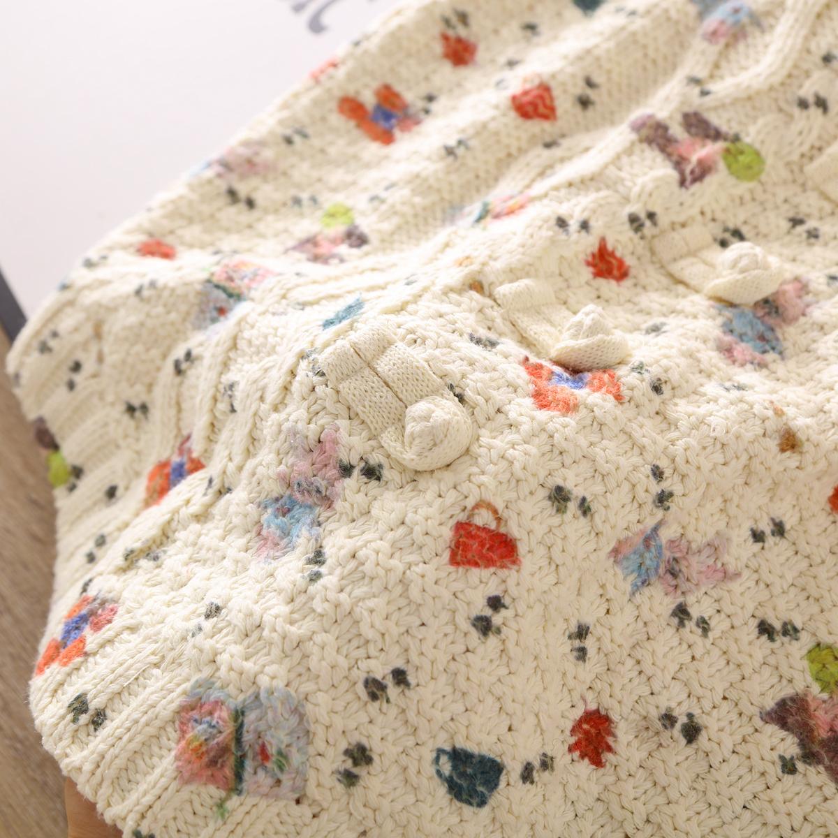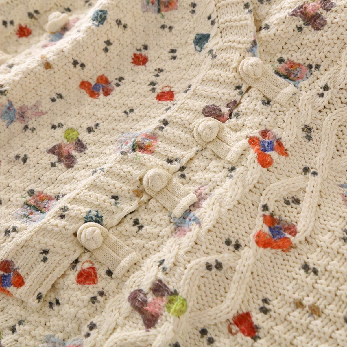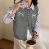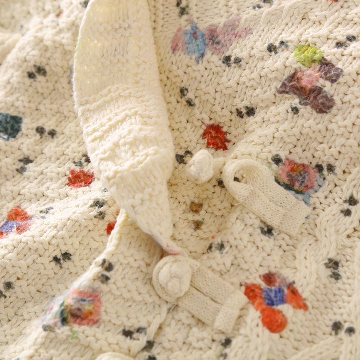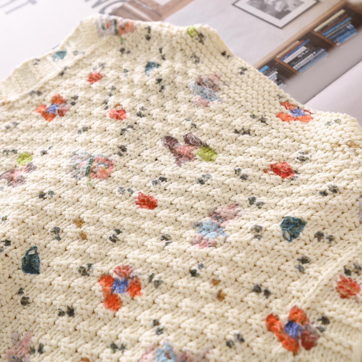 Colete retrô artístico com estampa pastoral fresca de outono de 2024, decote em V, novo colete de malha de algodão para todos os gostos