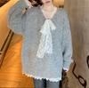 Gola Redonda Renda Retrô Coração Laço Tricô Preguiçoso Outono e Inverno Novo Solto Manga Longa Jaqueta Tricotada Top