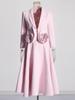 2025 Primavera e Verão Fato de Férias Gola de Lapela Cordão Manga Longa Top Saia Longa de Cintura Alta Fato de Duas Peças