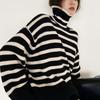 Moda feminina gola alta 2024 coreana outono e inverno novo suéter falso de duas peças solto uso externo camisa base listrada top