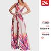 Vestido Envelope Peça Única Estampado Retrô Transfronteiriço 2025 Ajustado Longo Emagrecedor Feminino