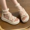 Sandálias de tira de praia antiderrapantes para mulheres 2024 verão nova celebridade da Internet estilo fada sapatos romanos baixos