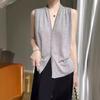 Regata Tricotada Feminina Interna 2024 Verão Nova Cintura Justa Gola Redonda Grau Indústria Pesada Com Contas Top Sem Mangas Francês