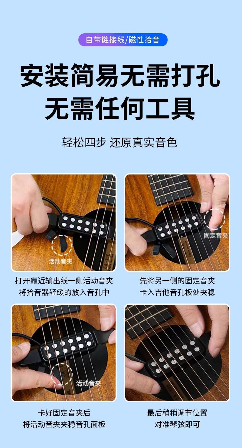 Instrumento de guitarra com orifício de som clip-on captador guitarra com ajuste externo captador fabricantes atacado transfronteiriço