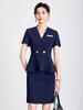 Azul marinho Manga curta Decote em V Pequeno Terno Jaqueta Calça Saia Feminina Verão Terno de Três Peças 2025 Novo Commuter
