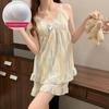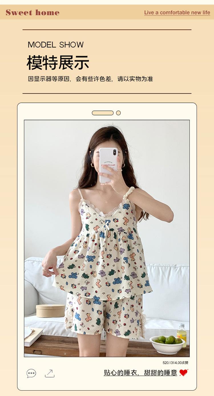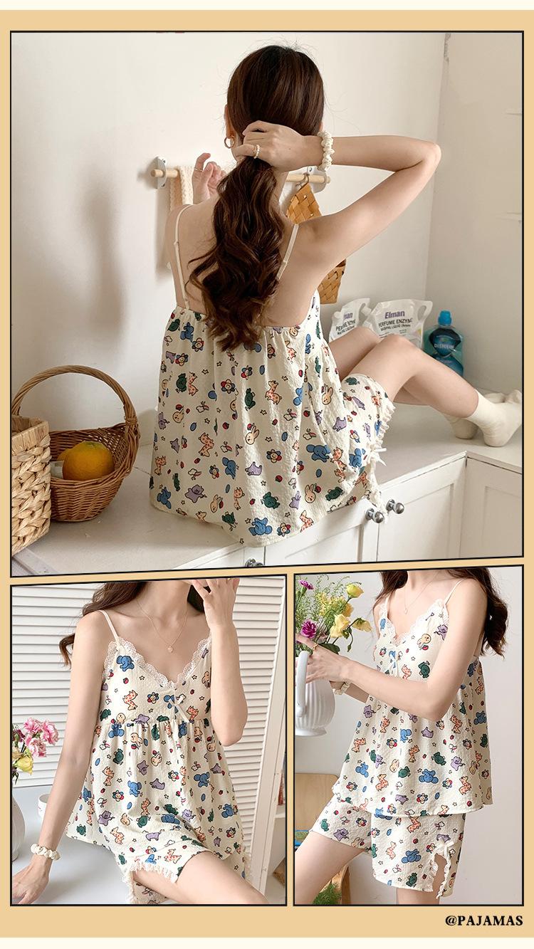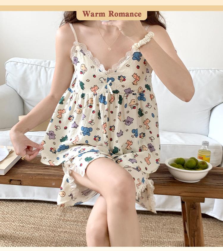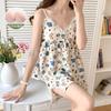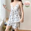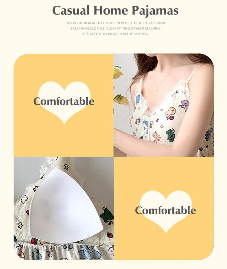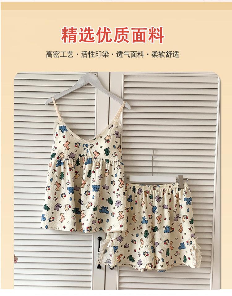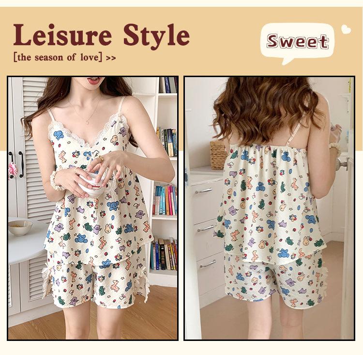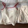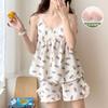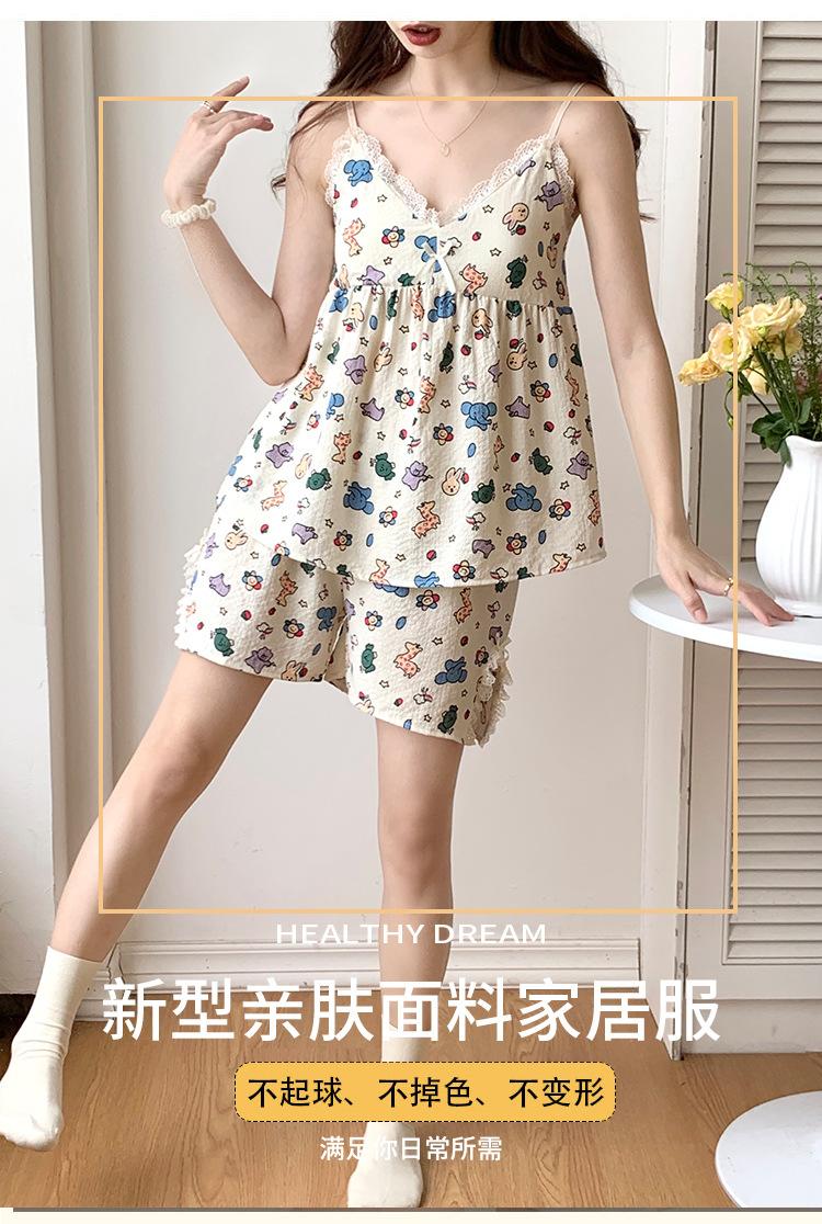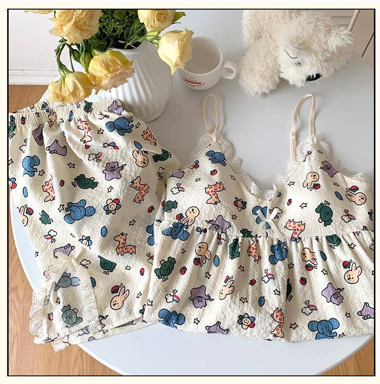 Pijama de verão feminino, shorts suspensórios com bojo, tecido bolha, enrugado, algodão fino, estilo desejo puro, roupa de casa feminina