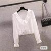 Xale pequeno verão novo fada babados alça decote em v proteção solar cardigan curto pequeno casaco renda top feminino