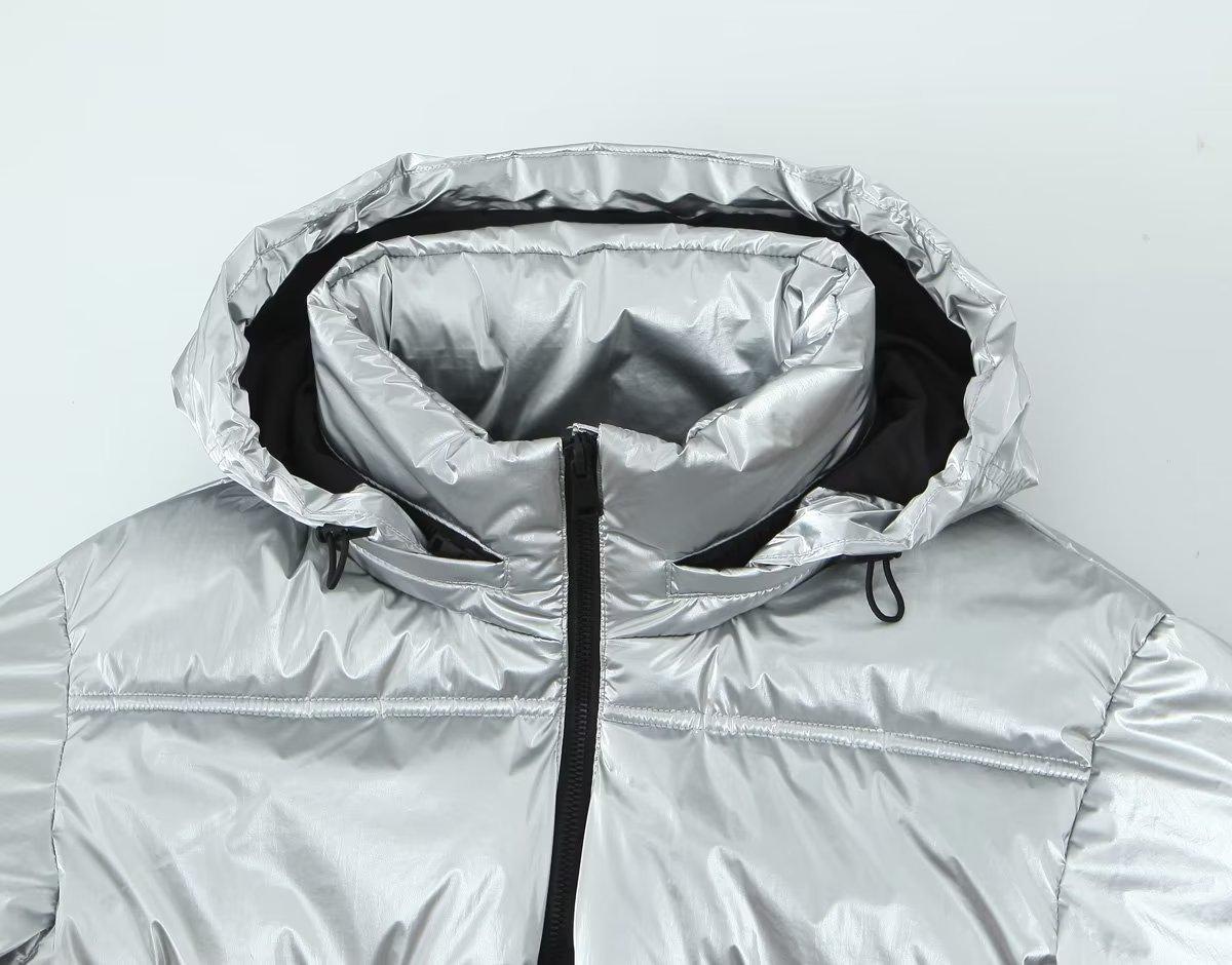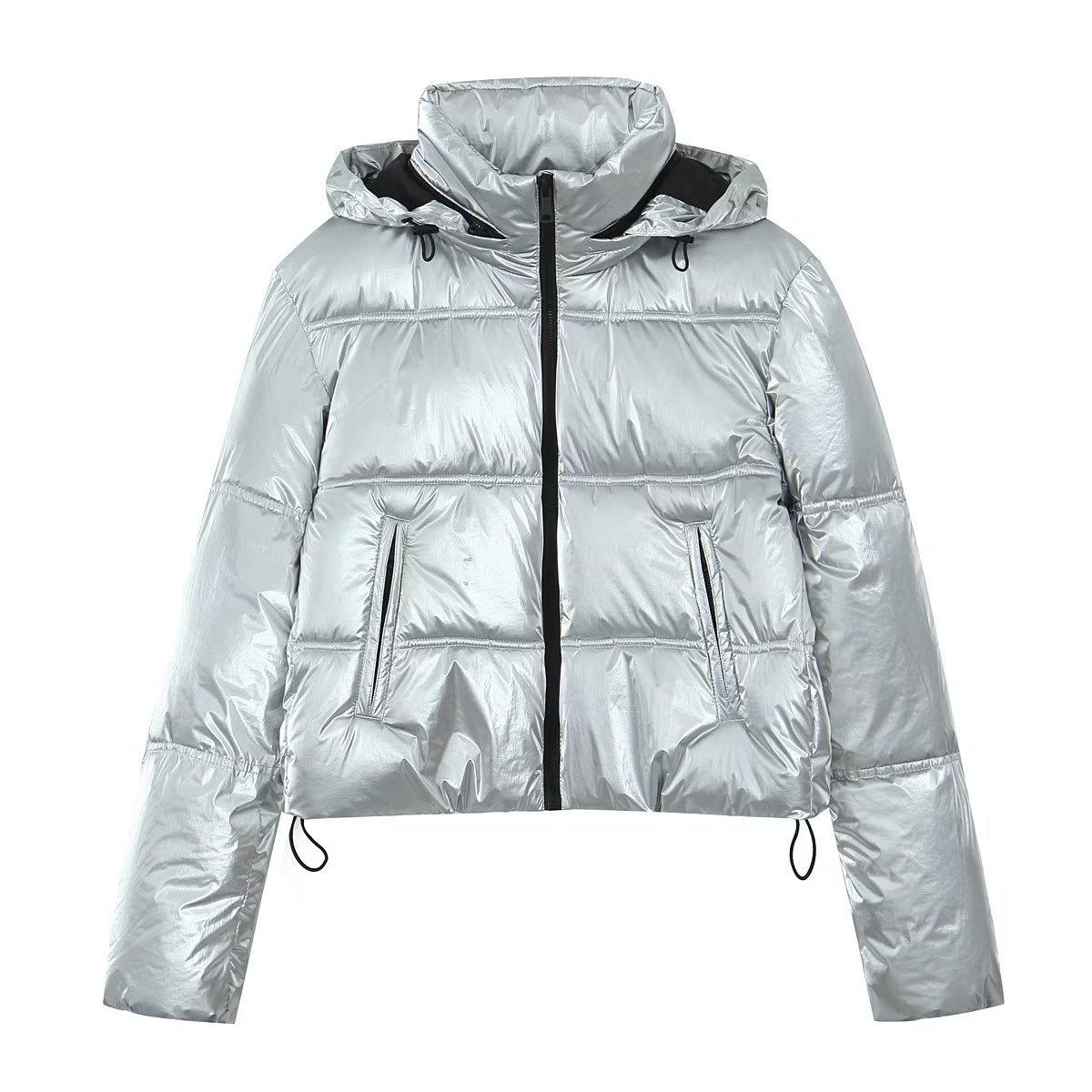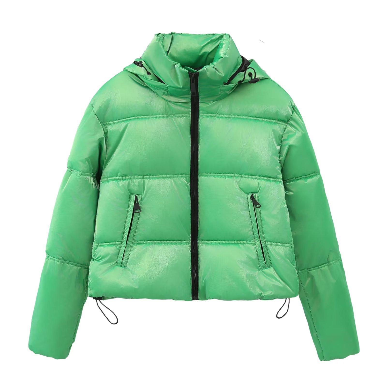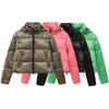 2023 inverno novo feminino pão quente casaco de metal algodão acolchoado curto grosso jaqueta multicolorido quente com capuz exterior