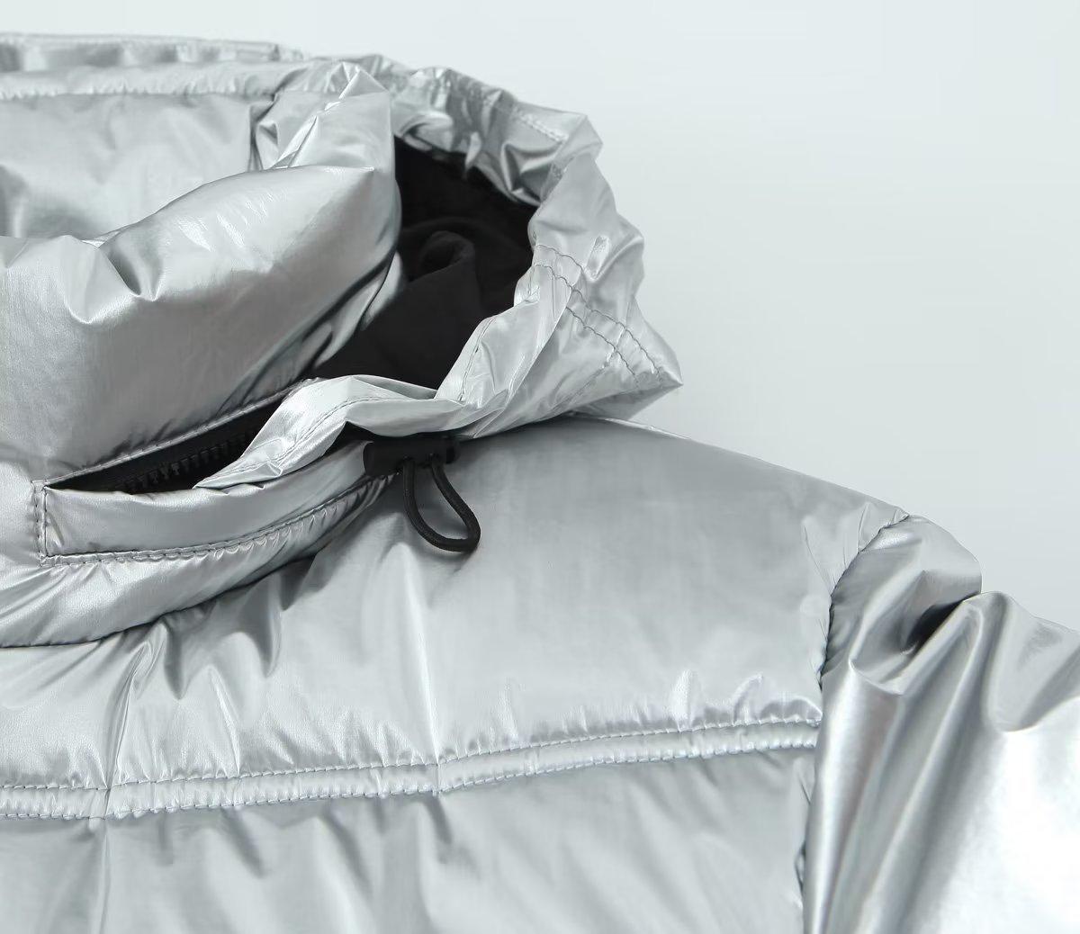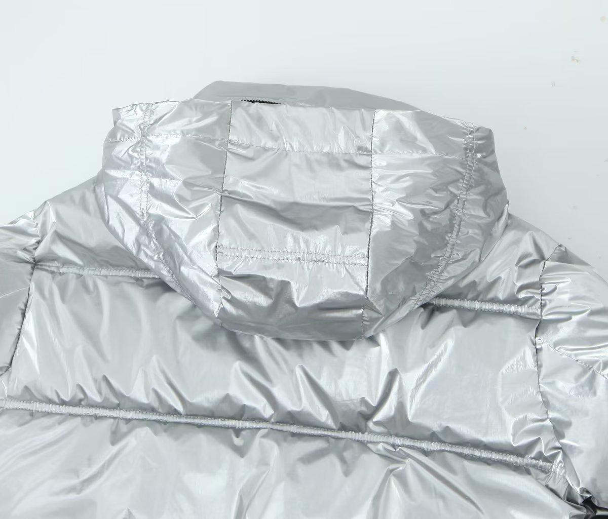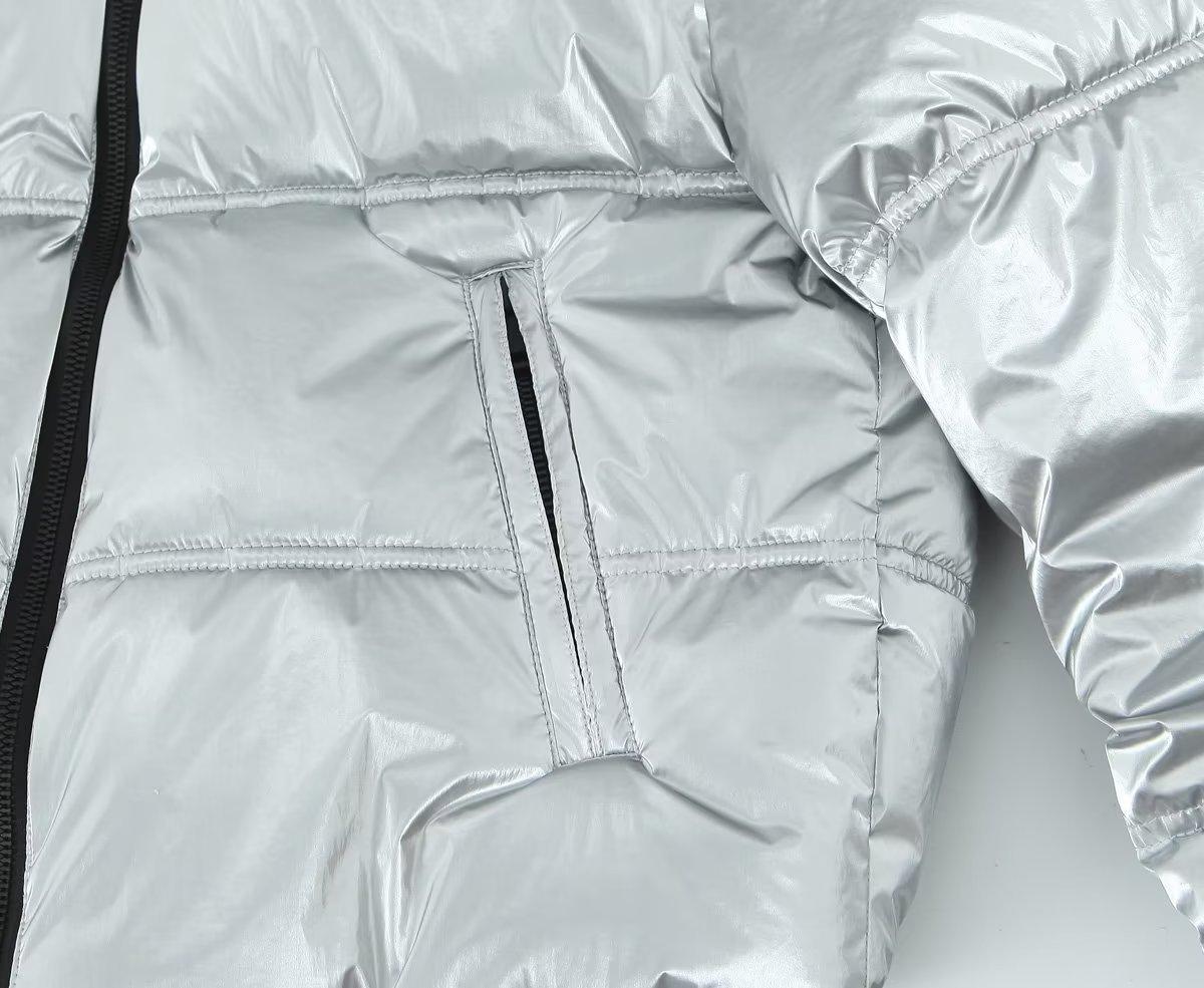 2023 inverno novo feminino pão quente casaco de metal algodão acolchoado curto grosso jaqueta multicolorido quente com capuz exterior