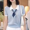 Blusa polo listrada estilo coreano, estilo slim fit, manga curta, tricotada, temperamento urbano, moda outono e verão 2024