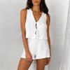 Amazon Atacado 2023 Primavera Novo Cor Sólida Decote V Regata Slim + Shorts Casuais Conjunto de Duas Peças