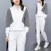 Conjunto esportivo feminino Primavera e Outono novo 2023 moda temperamento redutor de idade suéter gola alta jaqueta com zíper fino conjunto de duas peças