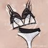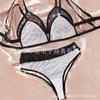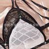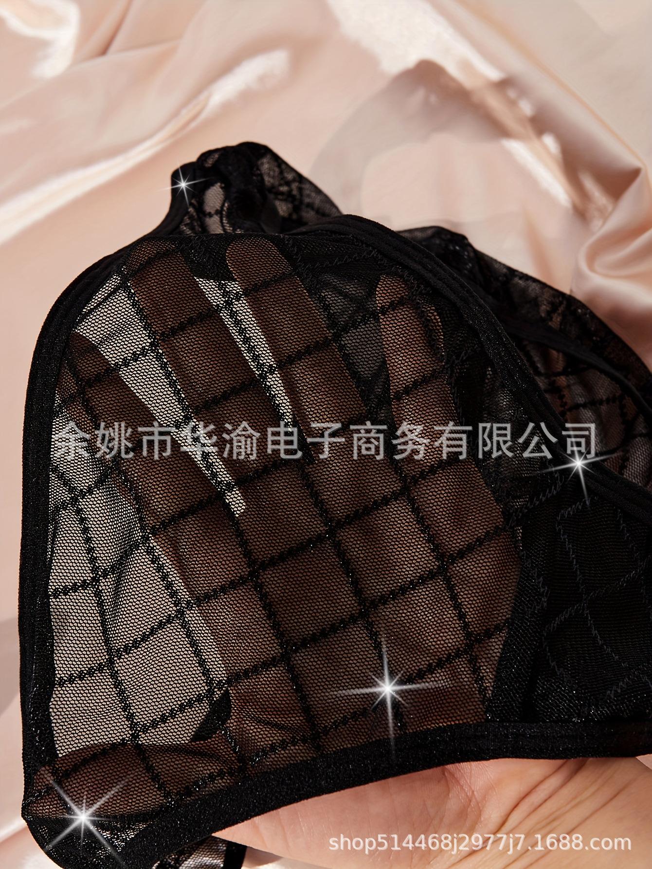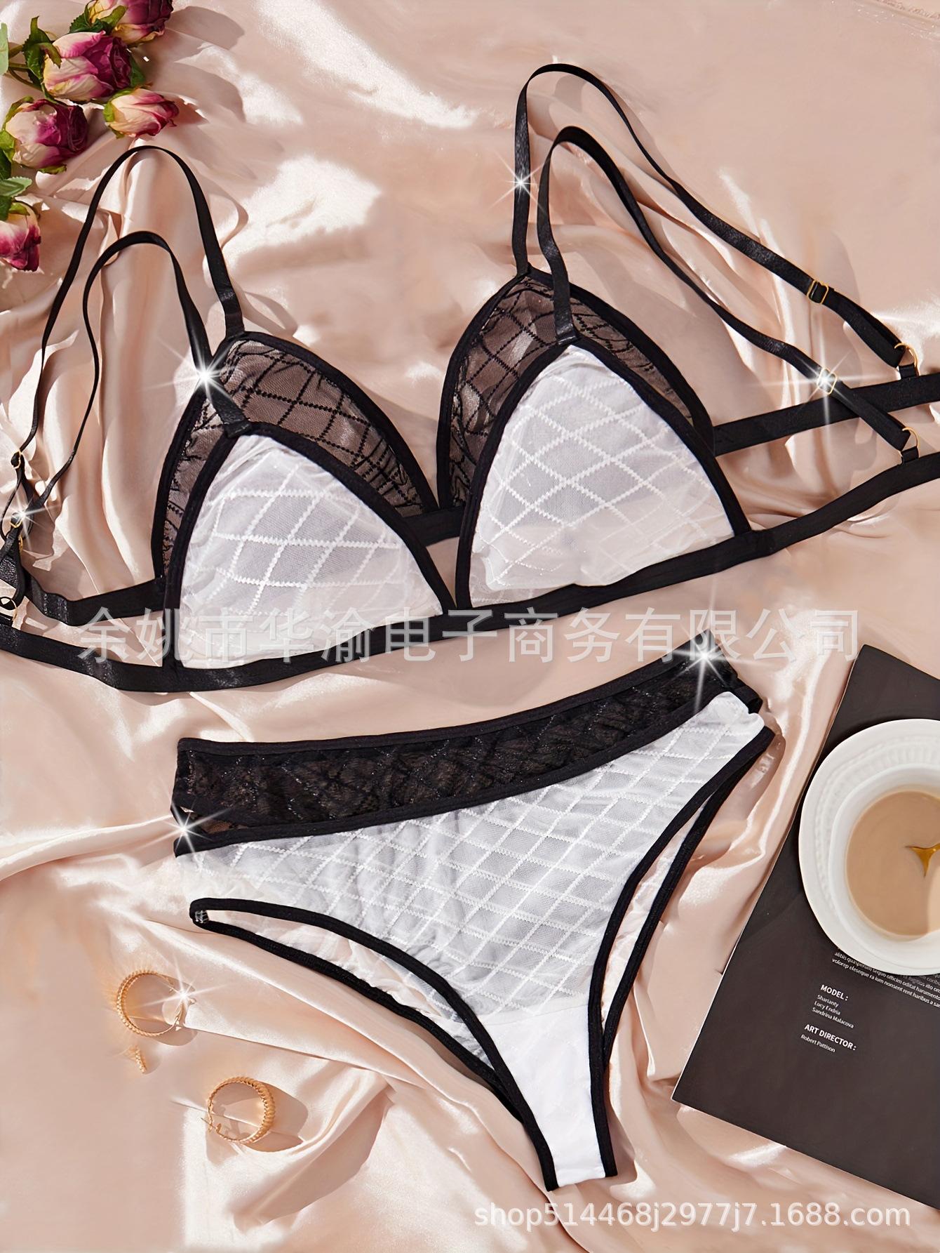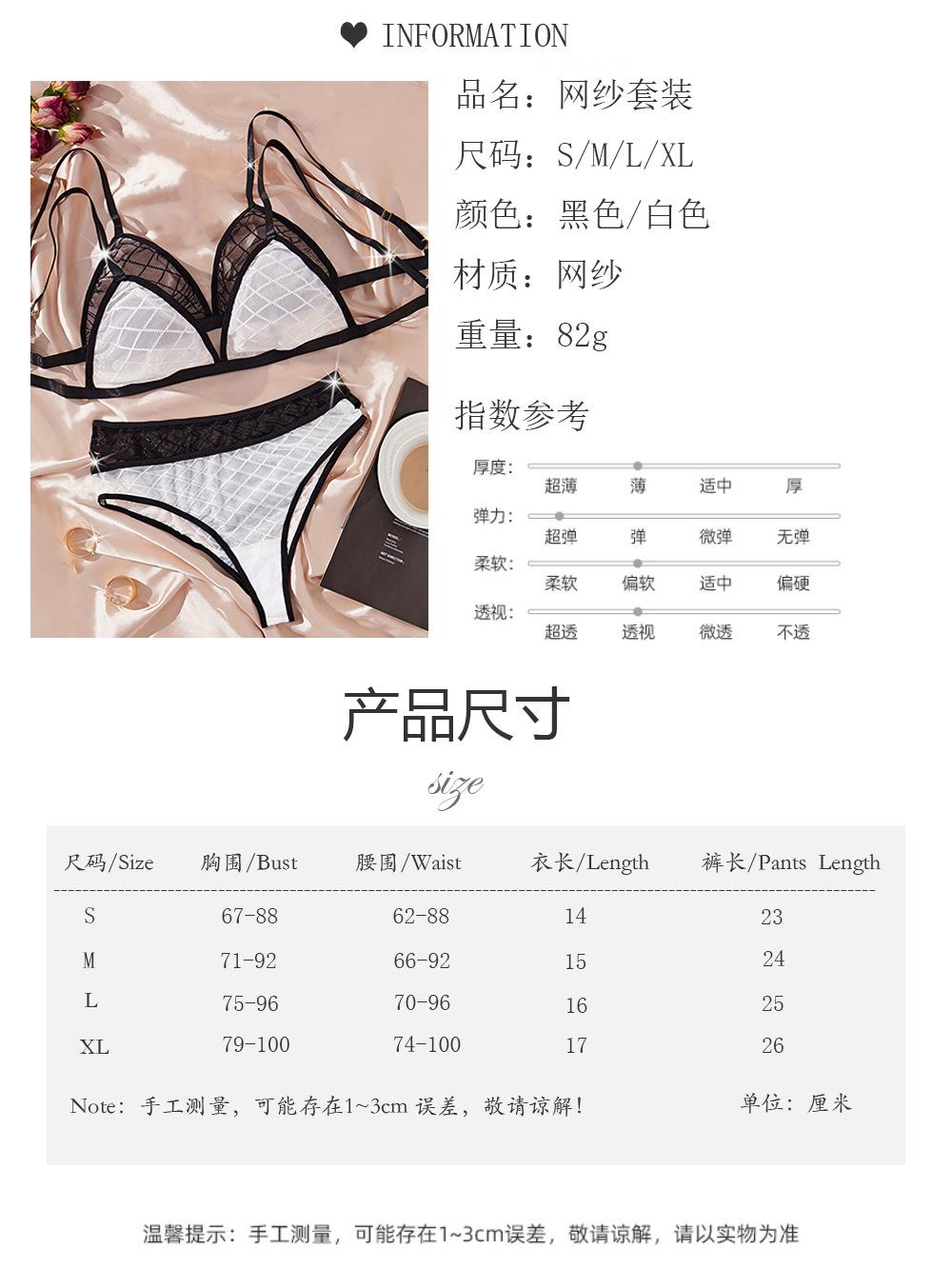 2024 novo estilo europeu e americano sexy perspectiva malha bicolor preto e branco cintura baixa tentação roupa íntima sexy conjunto de quatro peças