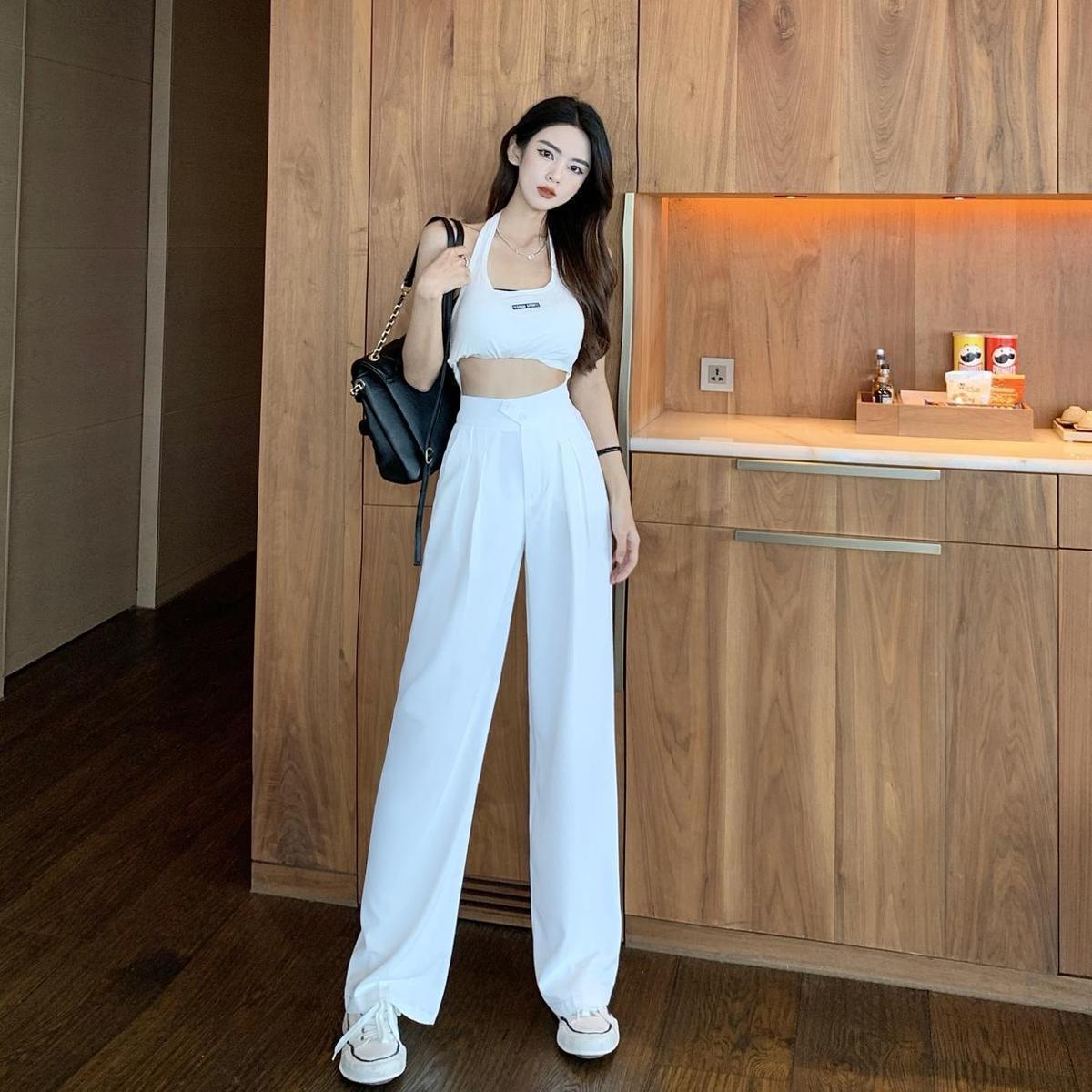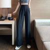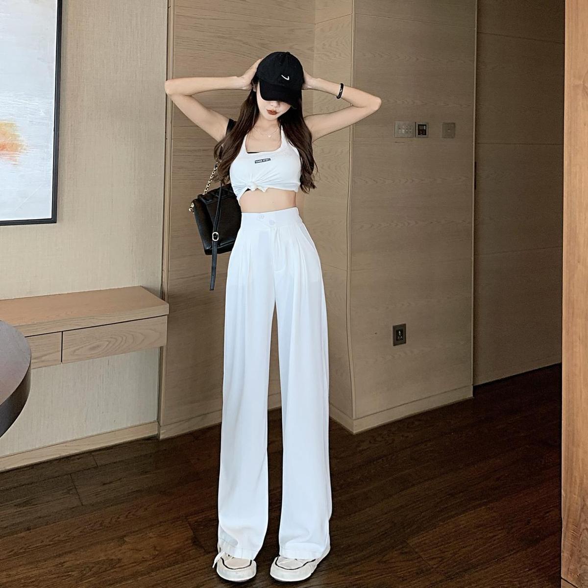 Calças Femininas Primavera e Verão 2022 Novas Cintura Alta Cobrindo a Barriga Emagrecendo Calças Casuais Soltas de Comprimento Longo com Pernas Largas