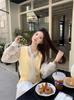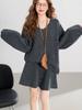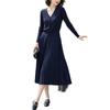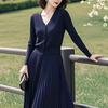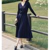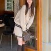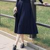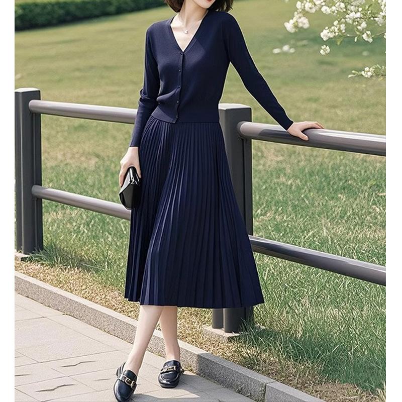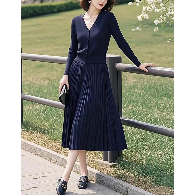 Azul marinho Conjunto de malha Feminino 2025 Primavera Novo Coreano Cardigã Top Saia plissada Midi Conjunto de duas peças