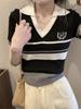 Camiseta Tricotada de Manga Curta com Gola Polo e Recorte para Mulheres 2025 Verão Novo Estilo Moda Versátil Top Camiseta Pequena Moderna