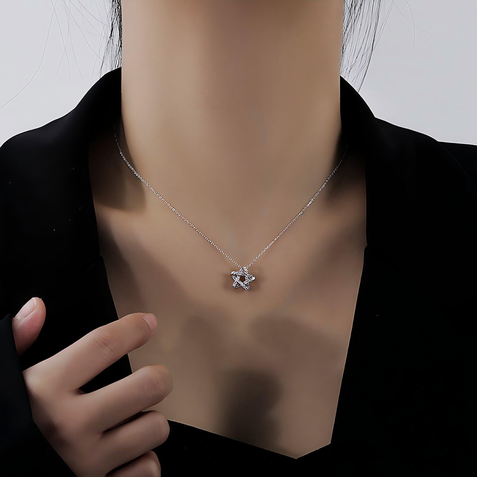 Colar de estrela feminino design de nicho simples senso 2024 nova estrela de cinco pontas deslocamento diário corrente de clavícula de aço inoxidável