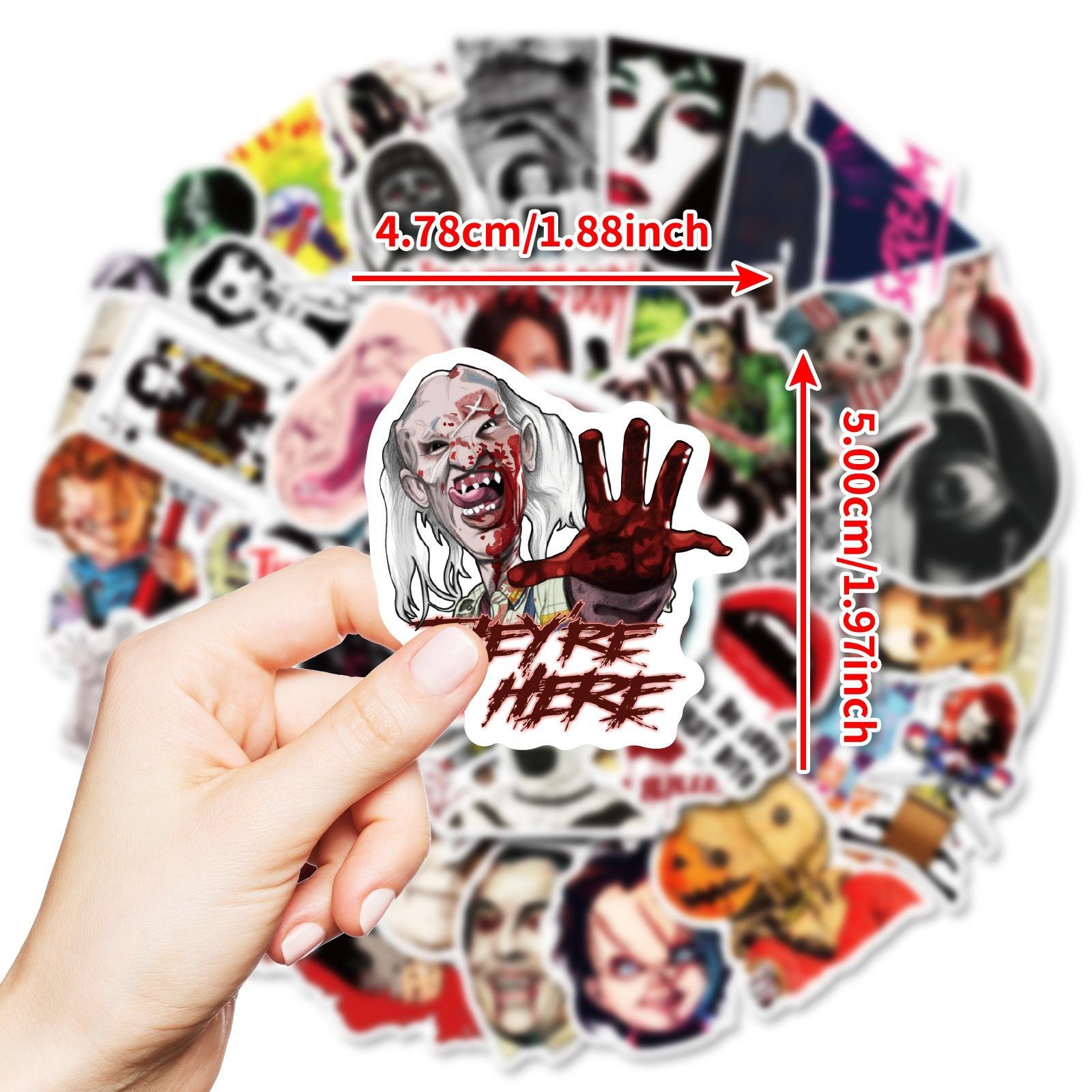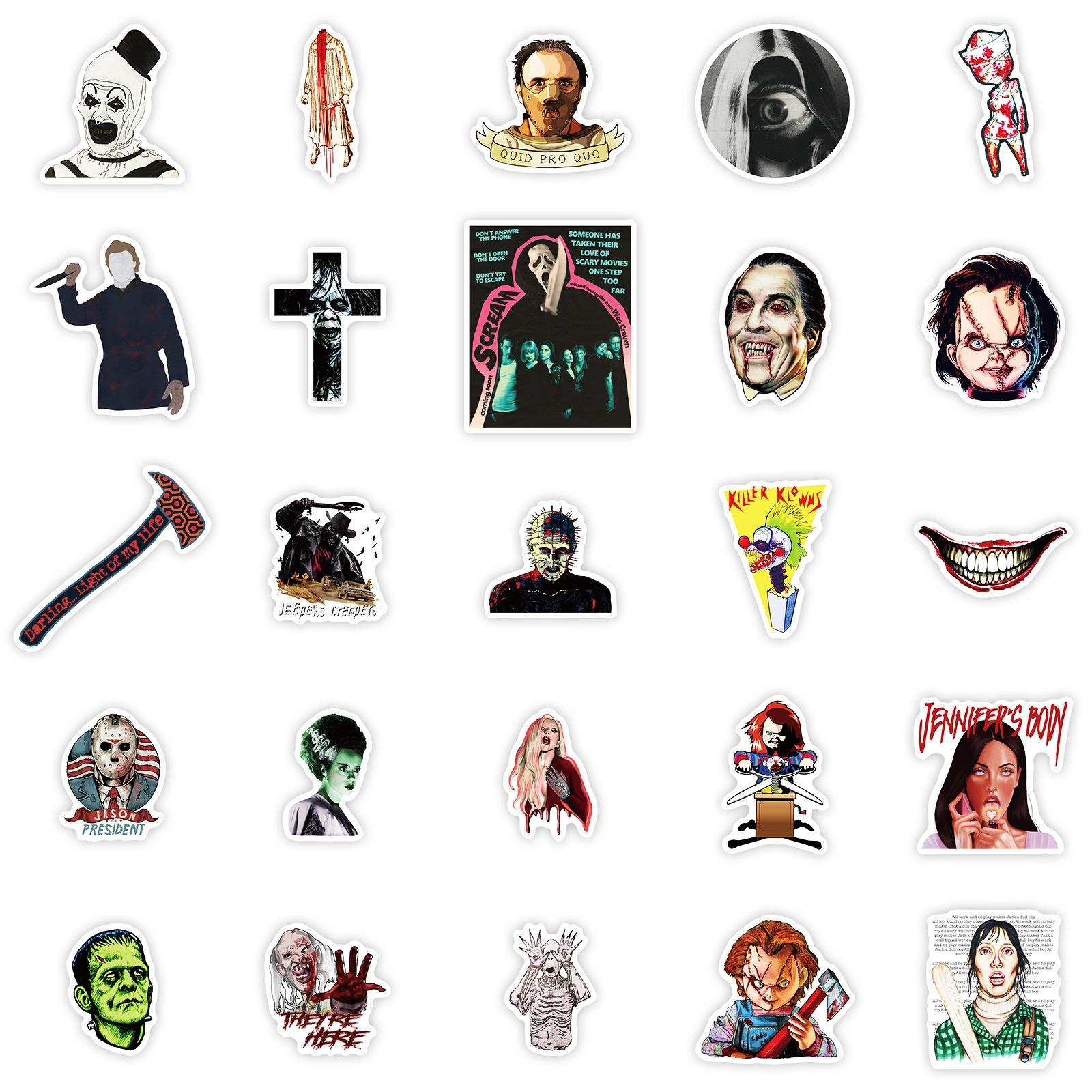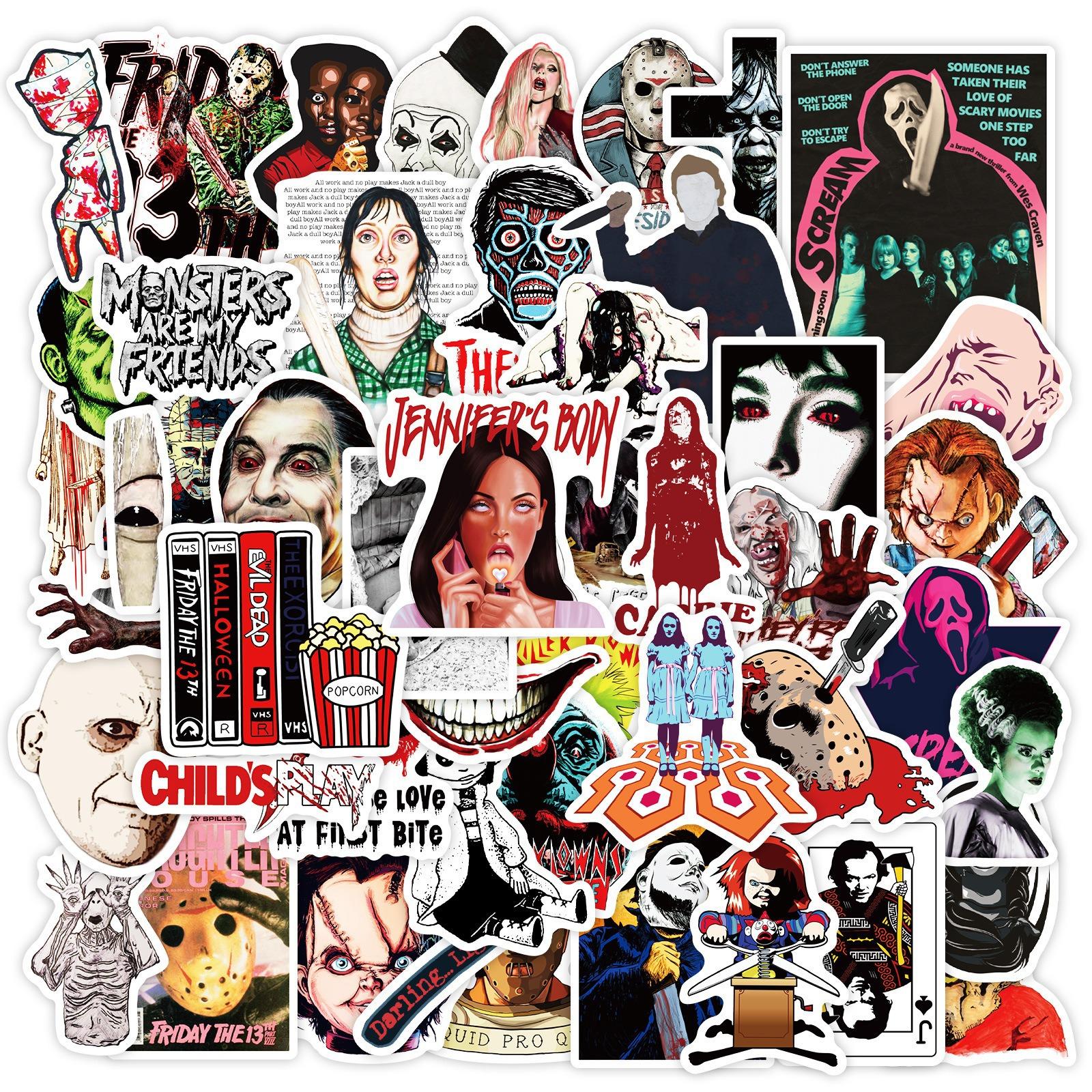 Adesivos criativos de 50 imagens de filmes de terror, adesivos de grafite de personagens de suspense de filmes de terror americanos, transfronteiriços