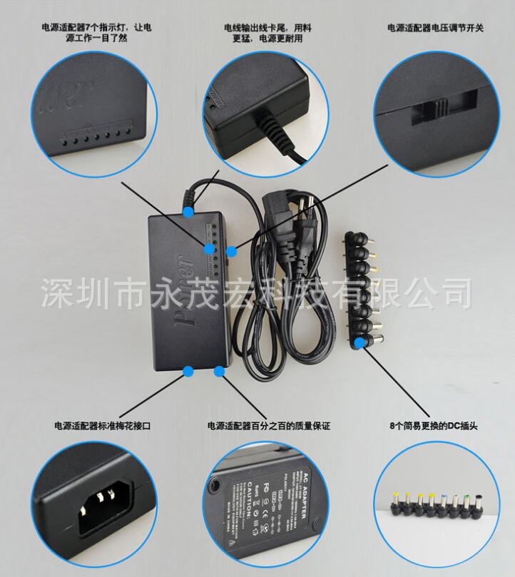 Adaptador de alimentação multifuncional para laptop carregador multifuncional 12V-24V 96W adequado para laptops, monitores LCD, etc.