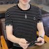 Camiseta Masculina de Verão Europeu Gola Redonda Manga Curta Moda Tendência Casual Versátil Manga Curta Ajustada Top TX3068