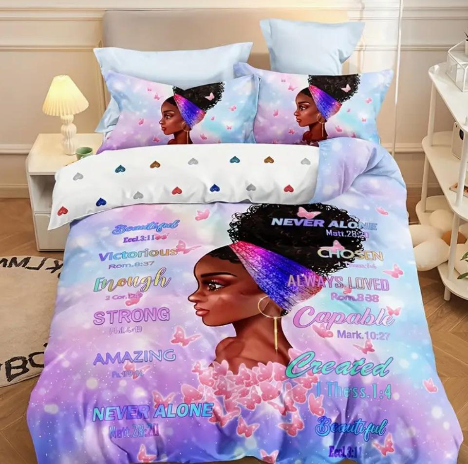 Roupa de cama impressão digital três peças desenho animado padrão menina africana impressão capa de edredom entrega em lote têxtil para casa transfronteiriço
