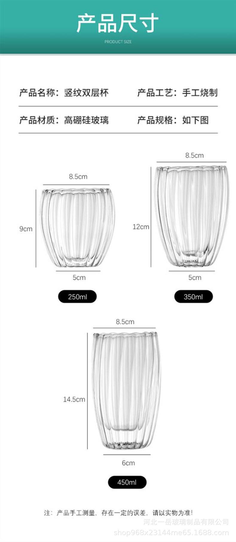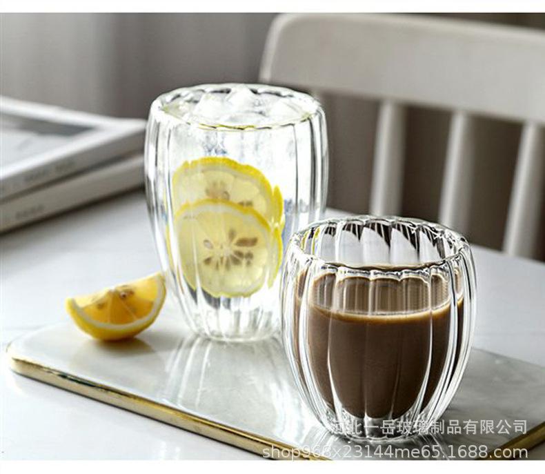 Copo de café transparente de vidro listrado de camada dupla, copo de leite, copo de chá, copo de suco doméstico de vidro borossilicato de camada dupla