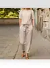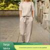 Primavera e Verão Novo Algodão e Linho Moda Casual Solto Conjunto de Duas Peças Top Sem Mangas Calças Soltas Terno Feminino