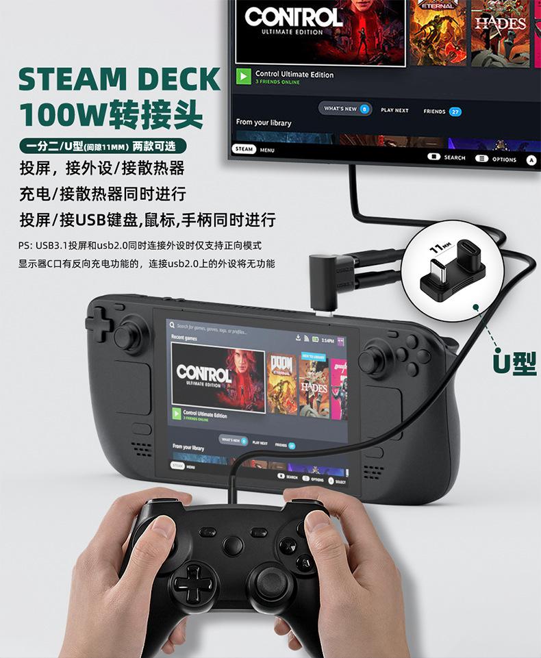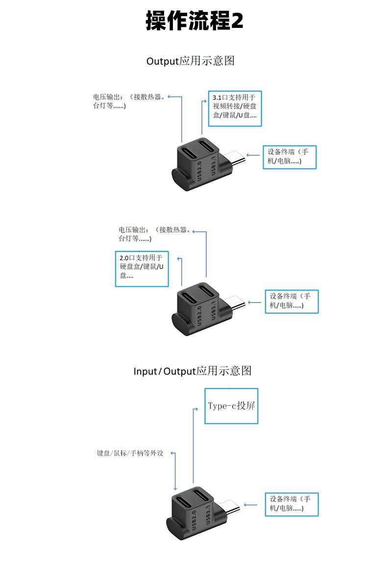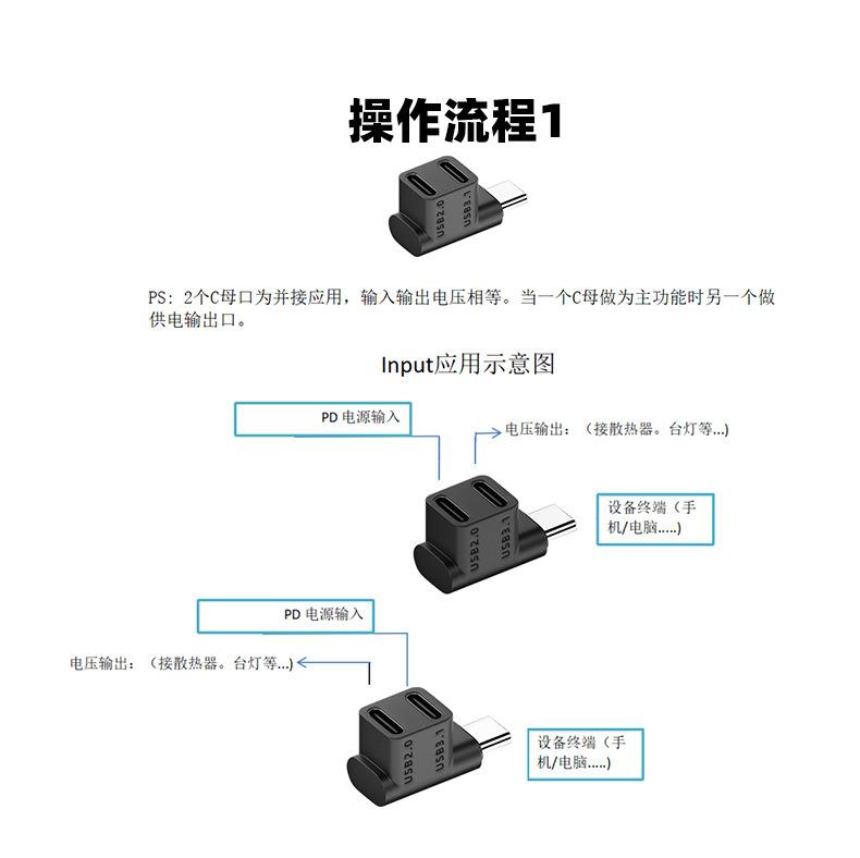 U-shaped extension type-c female to type-c male, 2type-c female to type-c male vertical bend