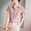 2025 Verão Nova Chegada Solta Estampada Camisa Polo Colarinho Feminina Alça Elegante Casual Fashion Manga Curta Top Versátil