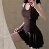 Desejo Puro Garota Quente Sexy Vestido de Alça Cintura Justa Design de Nicho Feminino Alça Design Plissado Saia Botão de Flor
