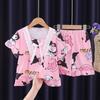 Terno de verão de manga comprida para casa, roupas finas de verão para meninas, roupas de ar condicionado para meninas e meninos, pijamas infantis confortáveis