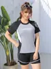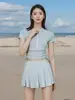 2025 novo maiô conservador de comércio exterior europeu e americano que cobre a barriga, maiô de duas peças com babados e boxer dividido, idade madura