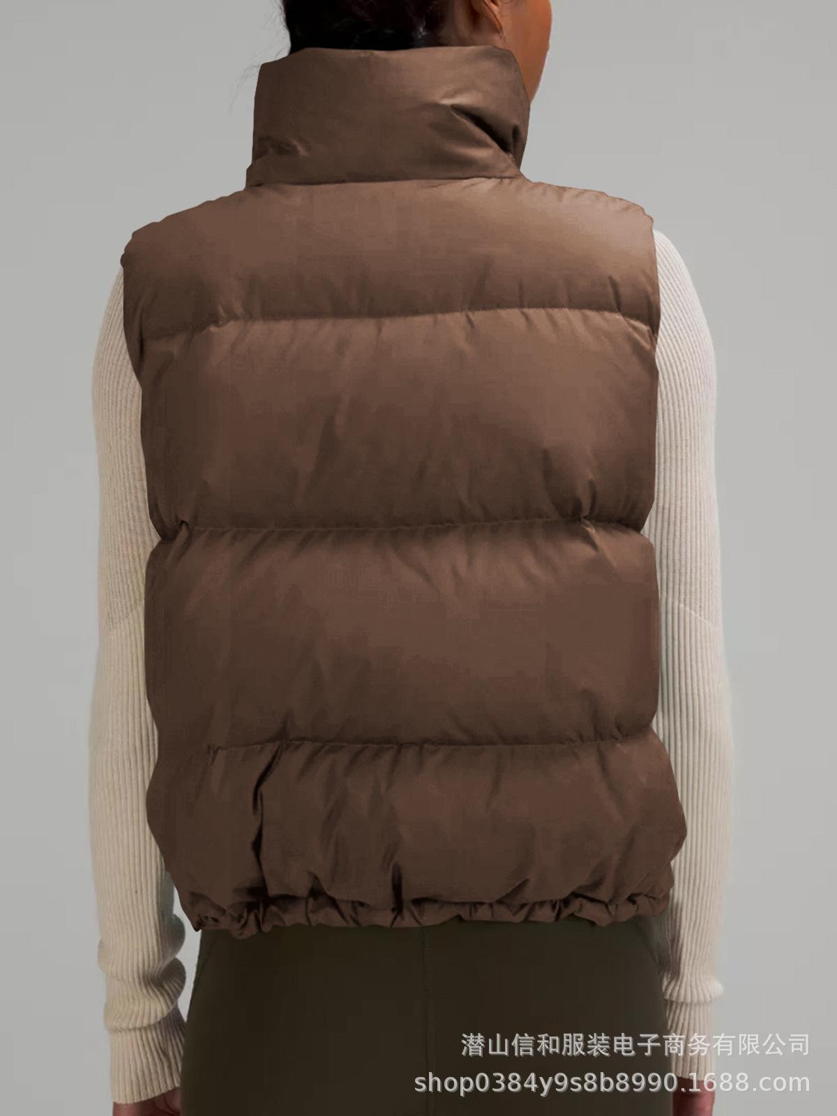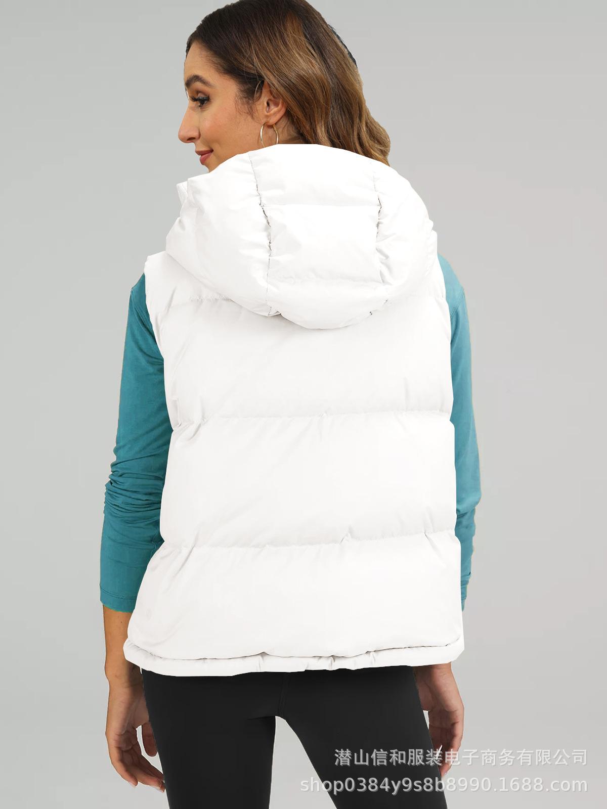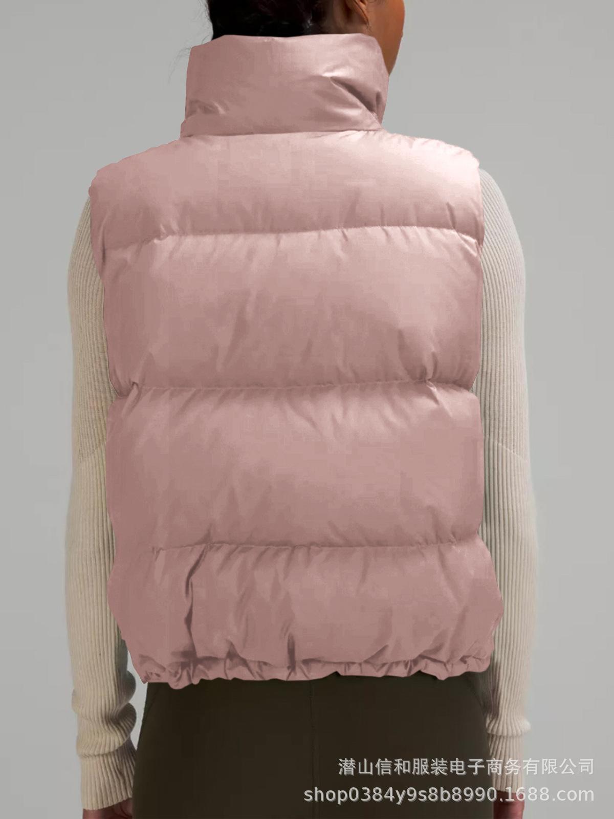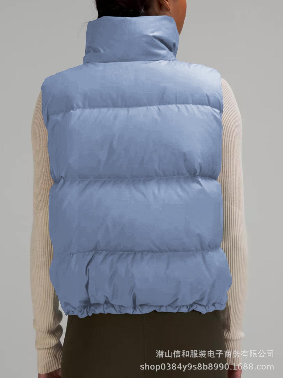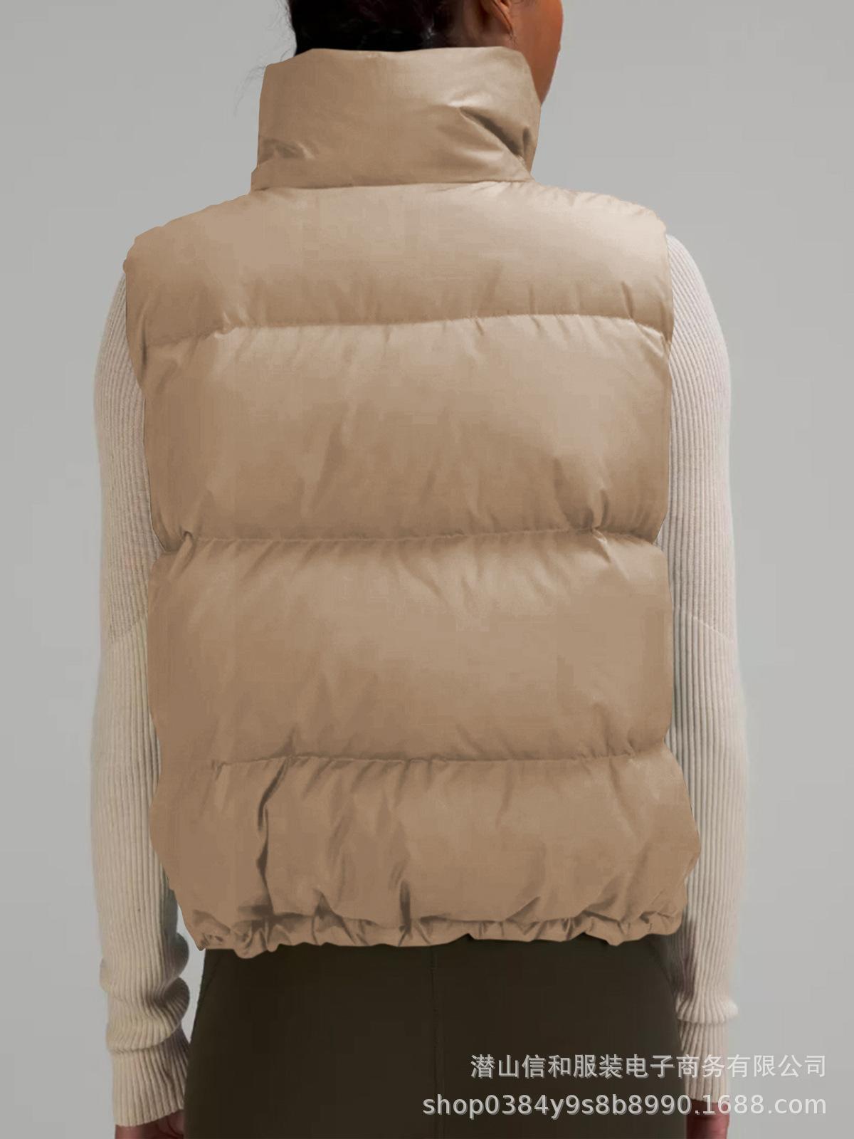 Colete de algodão transfronteiriço estilo europeu e americano outono e inverno 2023 novo estilo tendência bolso zíper colete sem mangas jaqueta gola alta para mulheres, peso: 395-459 gramas