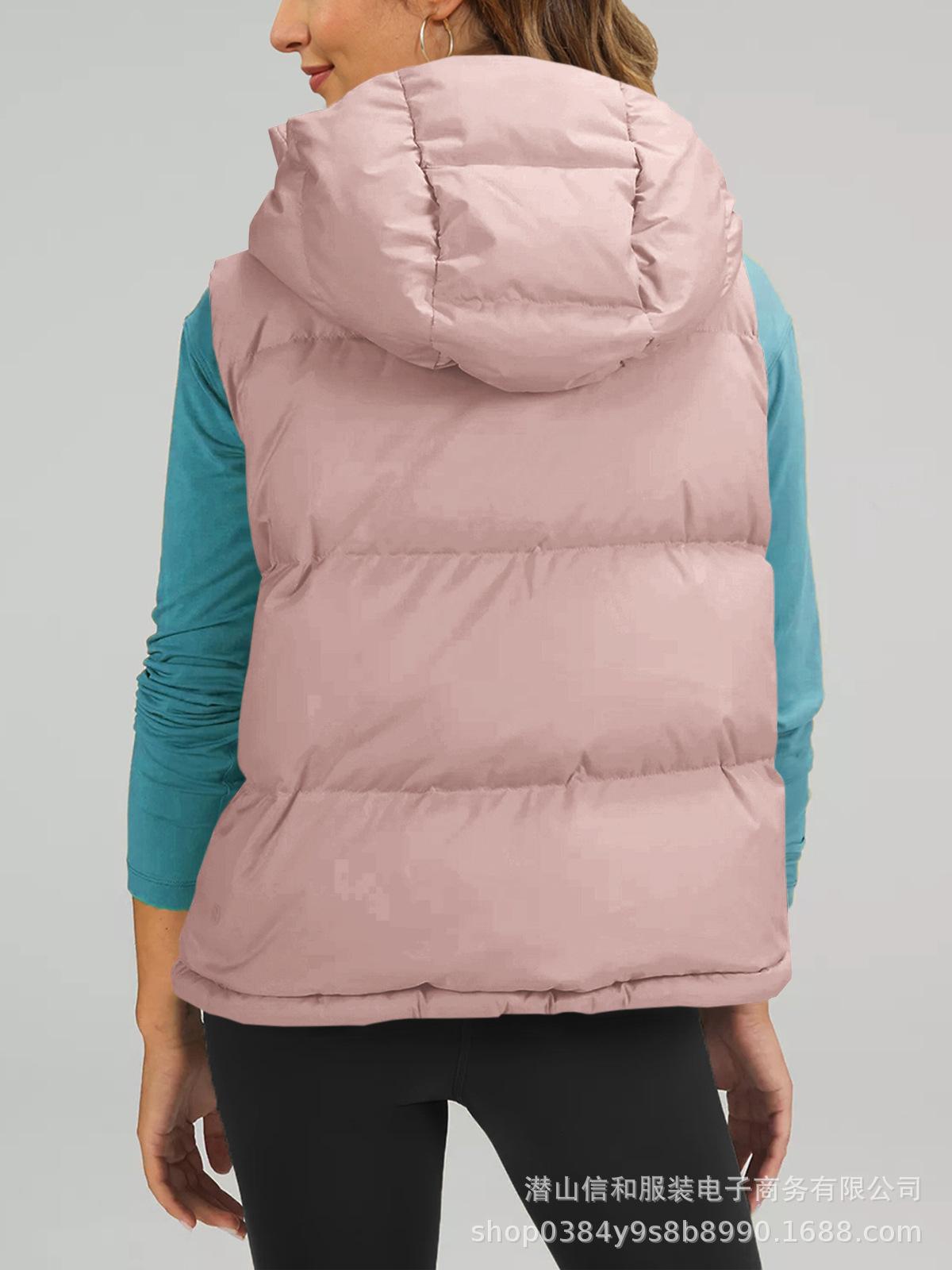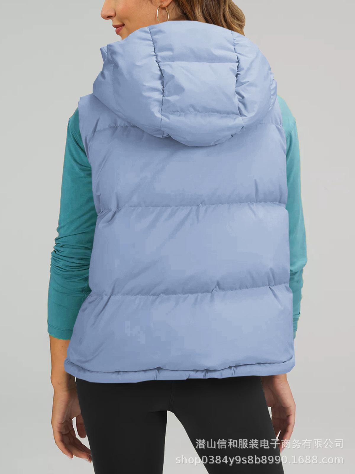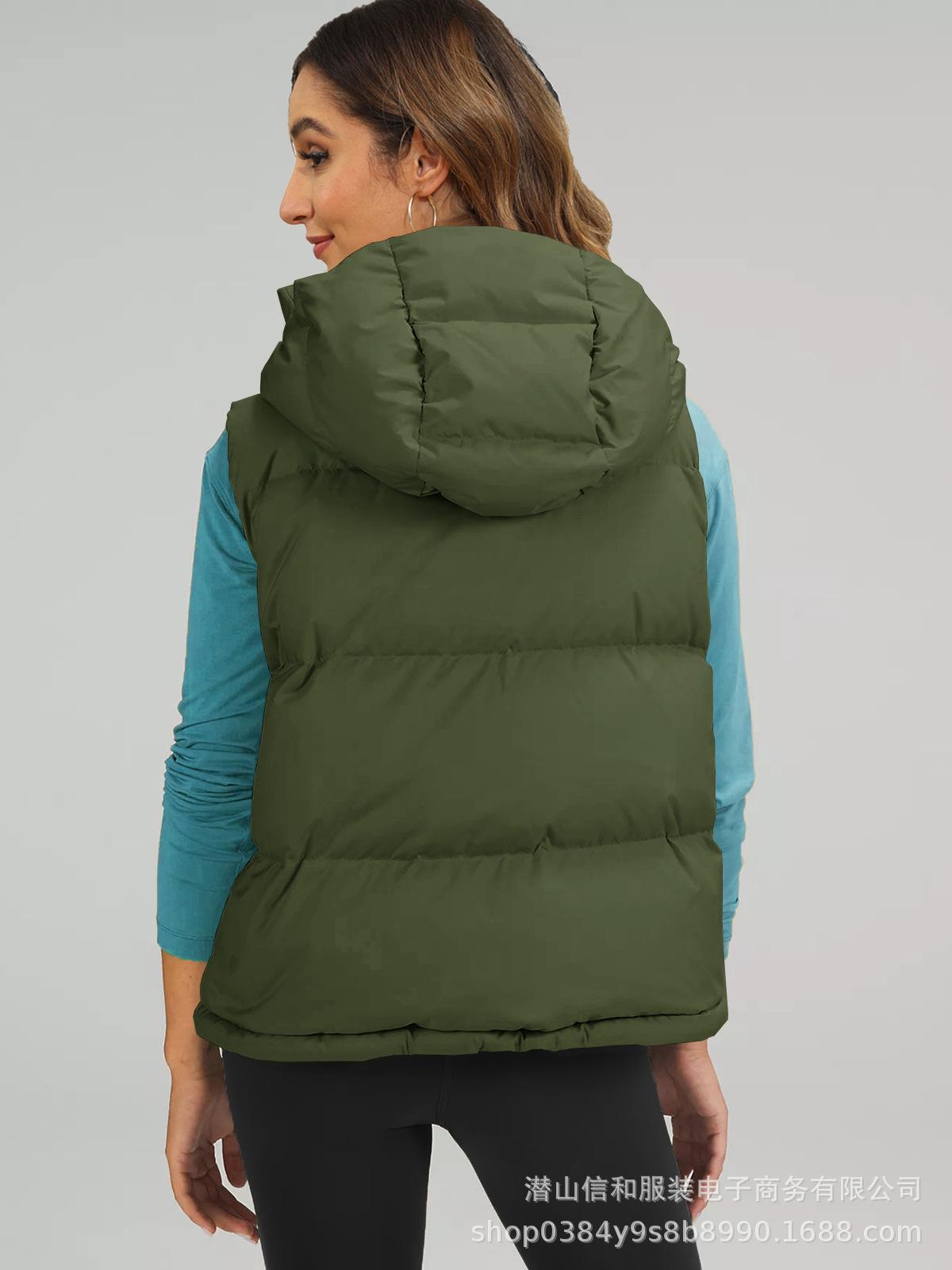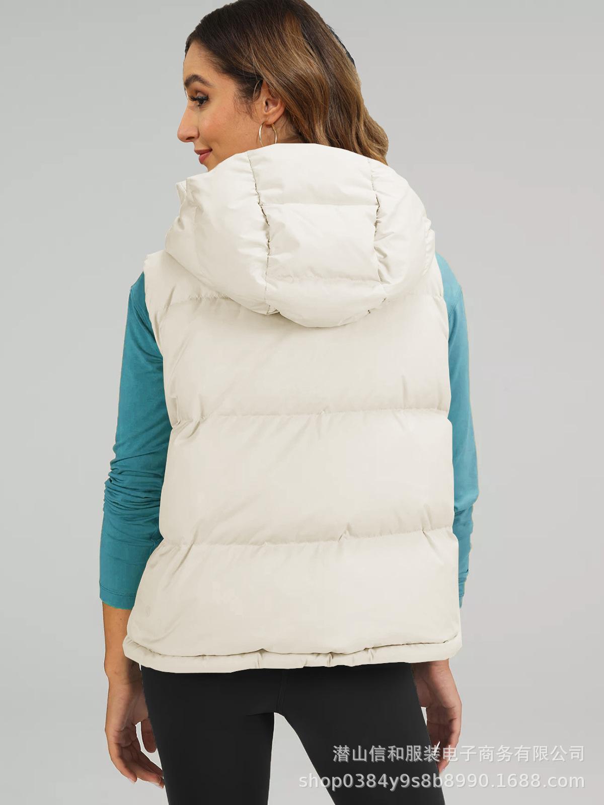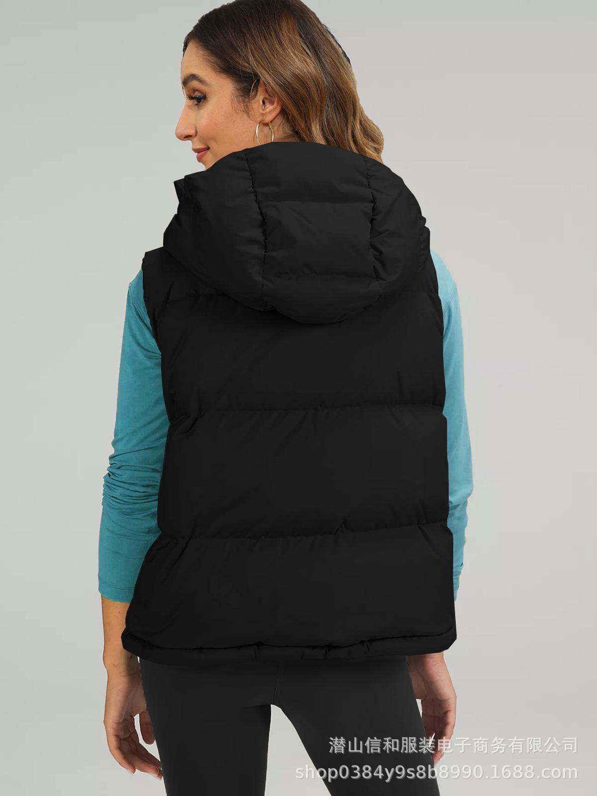 Colete de algodão transfronteiriço estilo europeu e americano outono e inverno 2023 novo estilo tendência bolso zíper colete sem mangas jaqueta gola alta para mulheres, peso: 395-459 gramas