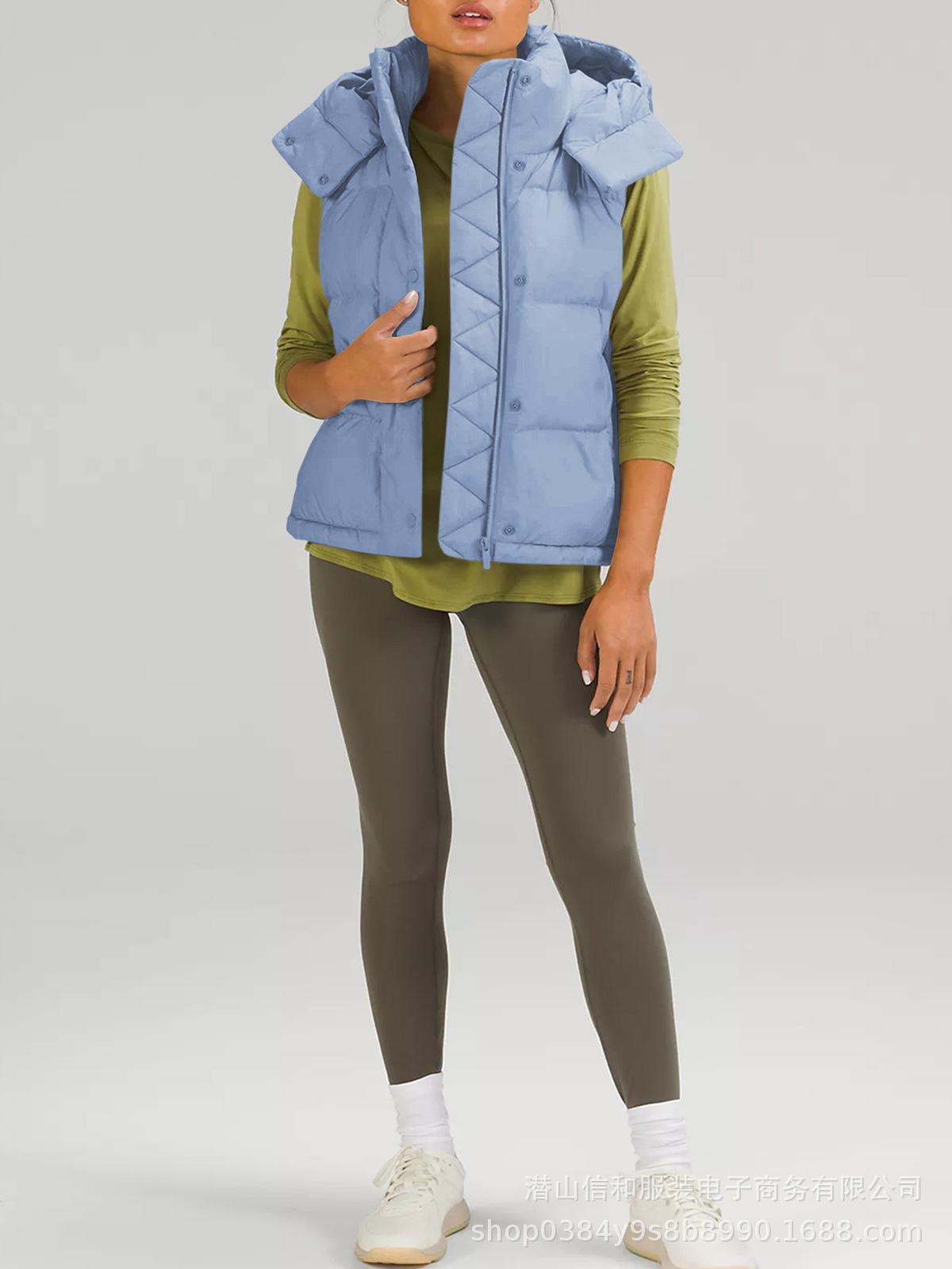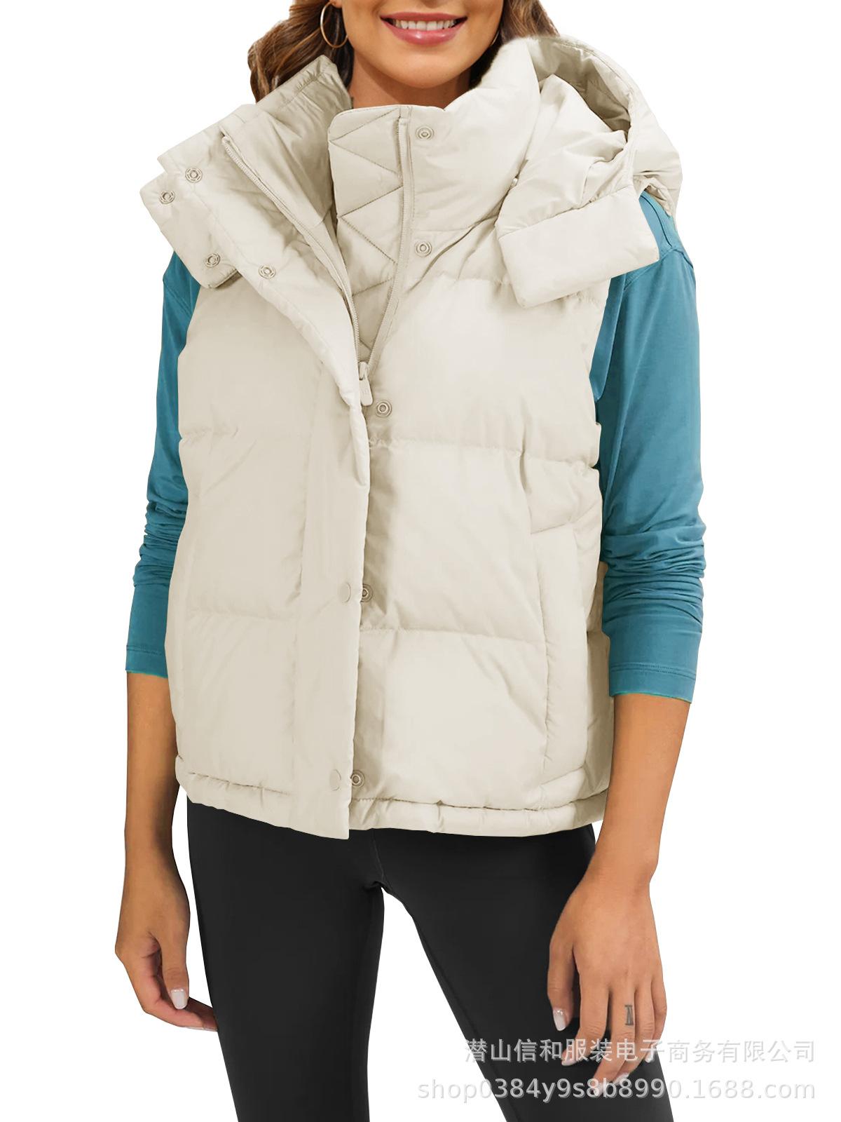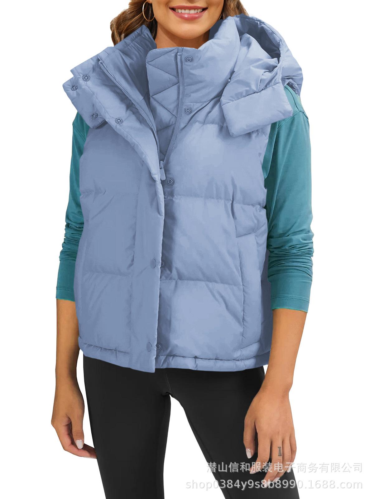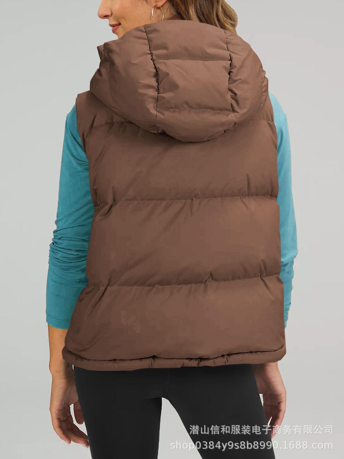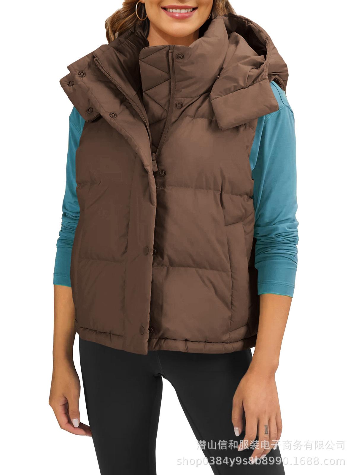 Colete de algodão transfronteiriço estilo europeu e americano outono e inverno 2023 novo estilo tendência bolso zíper colete sem mangas jaqueta gola alta para mulheres, peso: 395-459 gramas