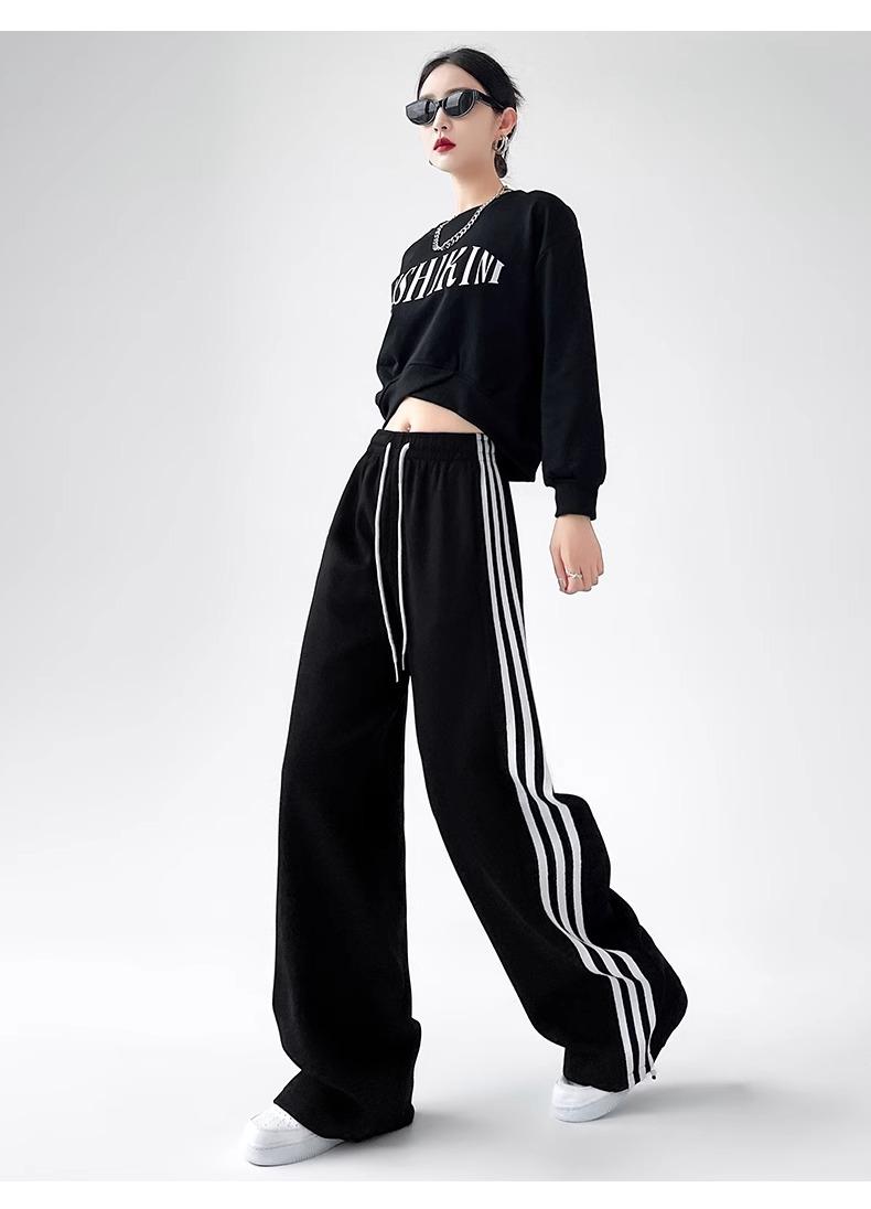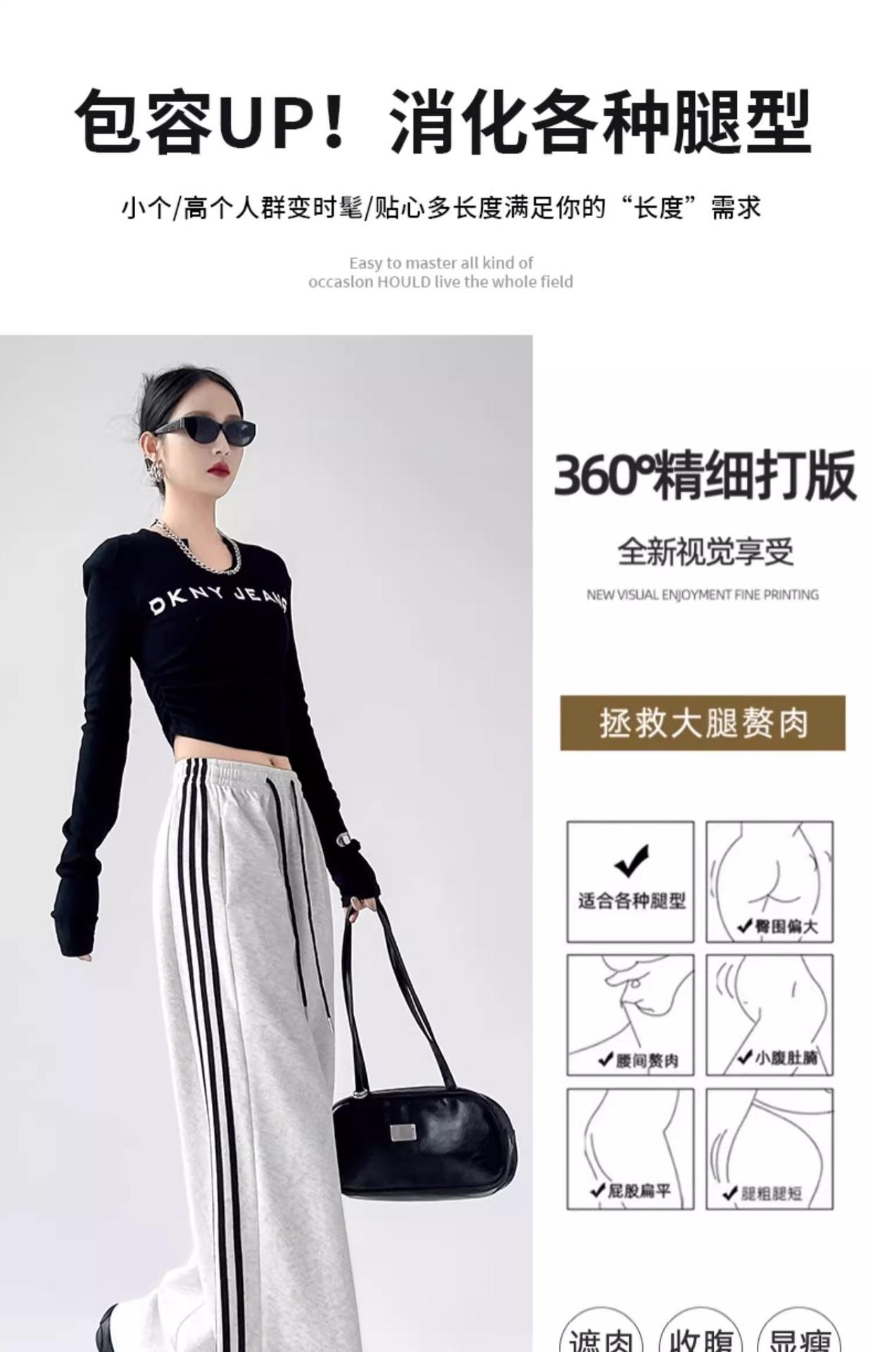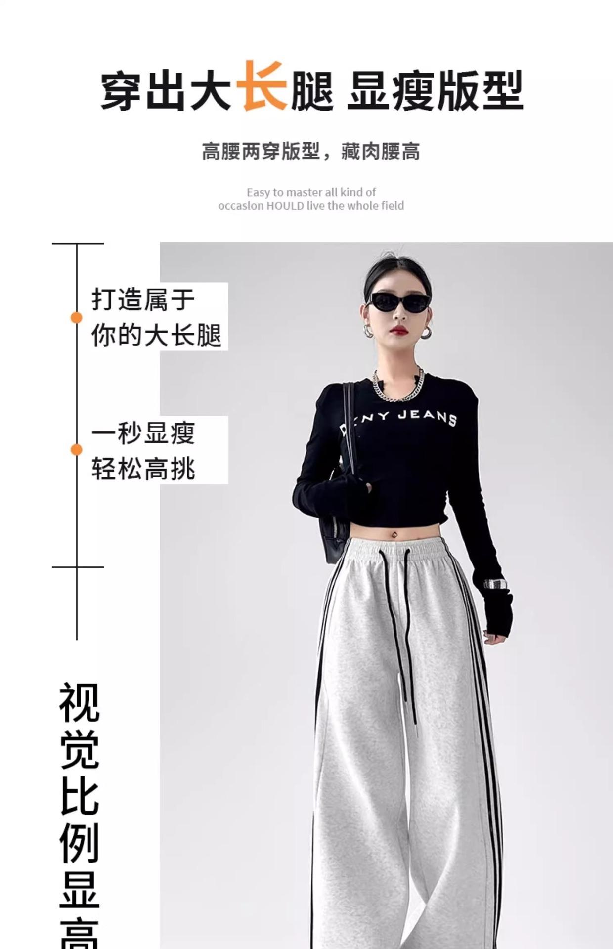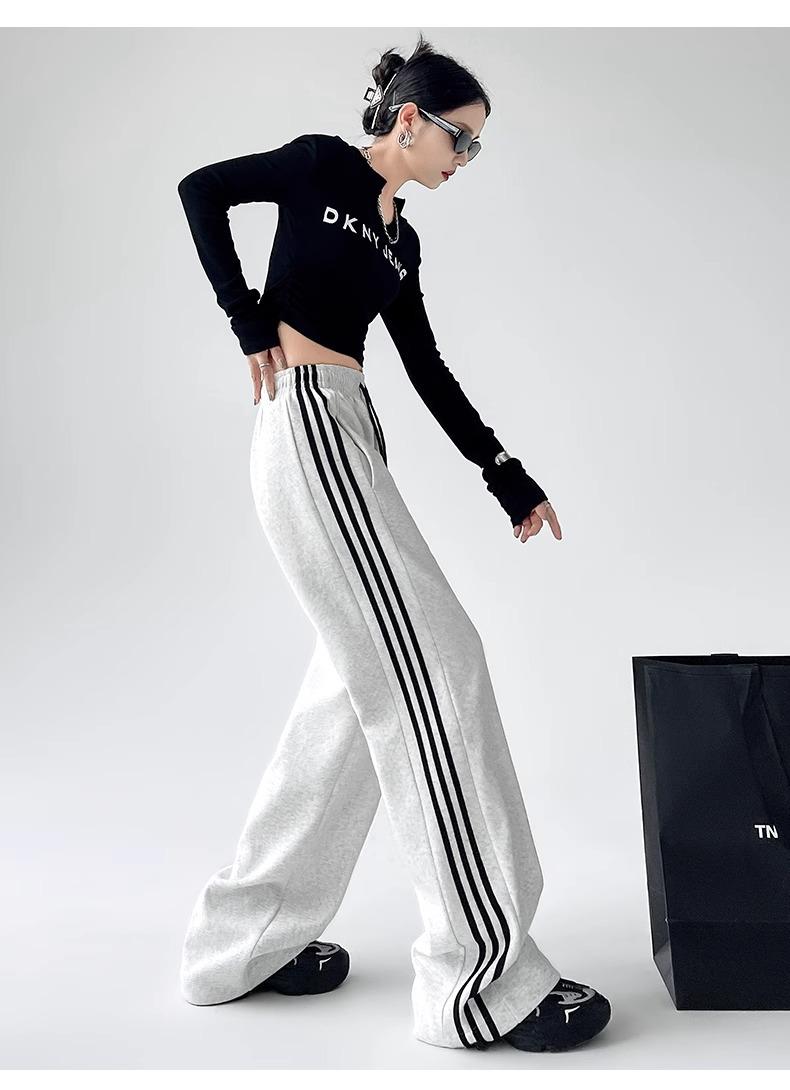 Calças de Moletom Femininas Estilo Americano Plus Size 2025 Novo Outono e Inverno Soltas Caimento Casual Joggers com Três Listras Calças de Perna Larga