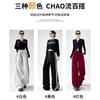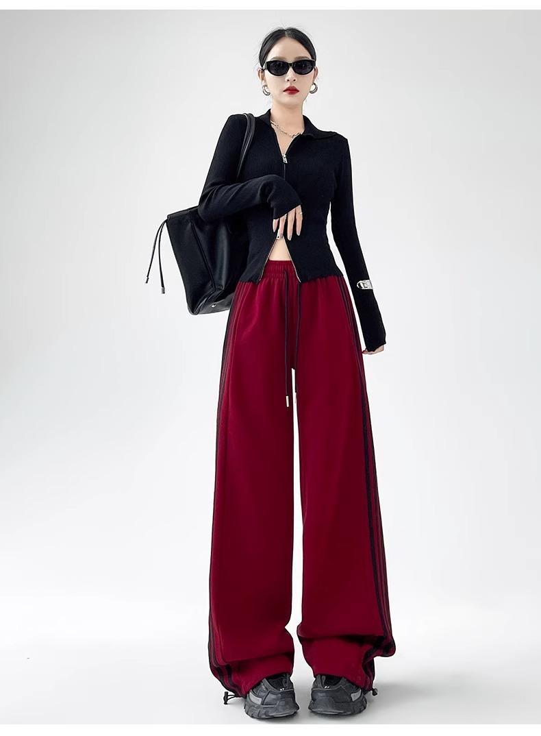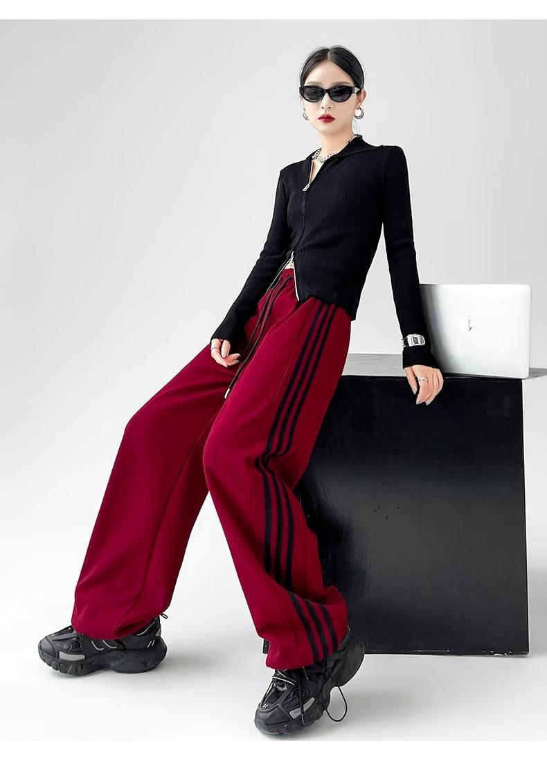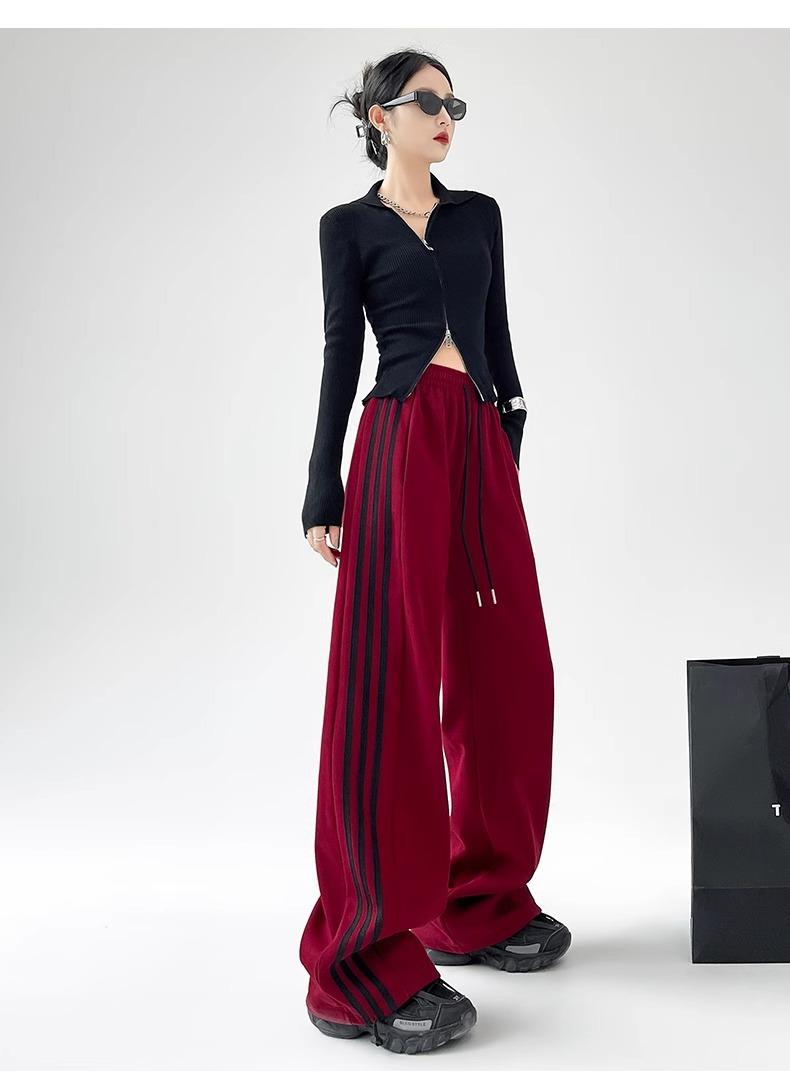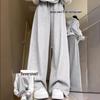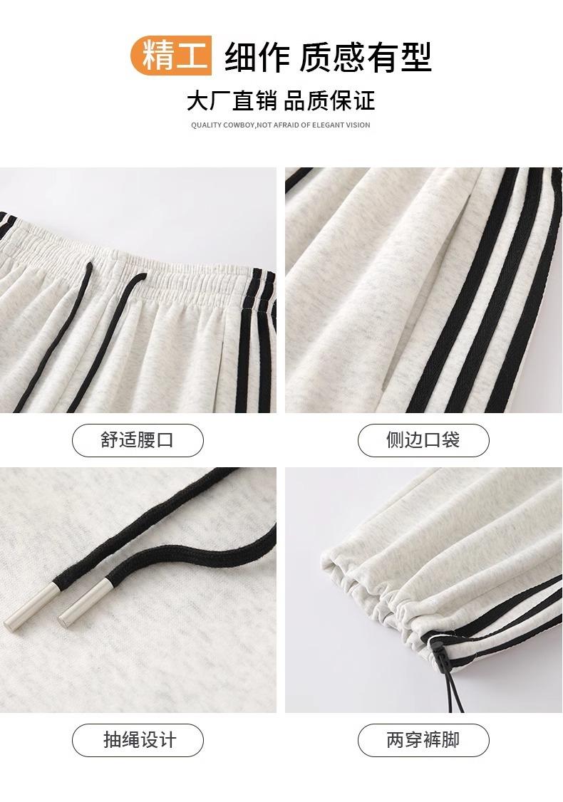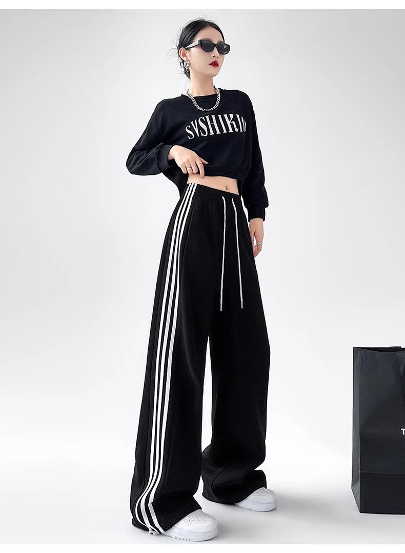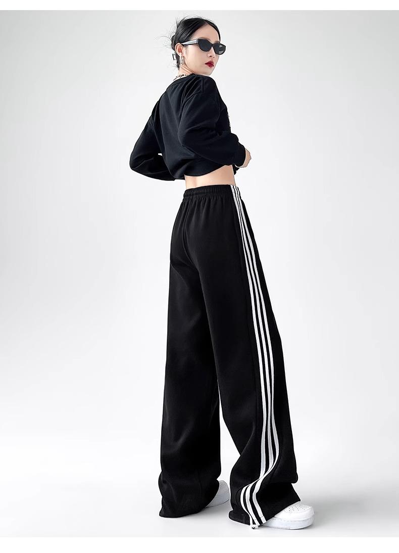 Calças de Moletom Femininas Estilo Americano Plus Size 2025 Novo Outono e Inverno Soltas Caimento Casual Joggers com Três Listras Calças de Perna Larga