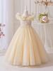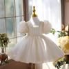 Vestido infantil de manga comprida para meninas, vestido de princesa para aniversário, vestido de apresentação de fio fofo para meninas, apresentadora de piano e fada