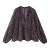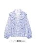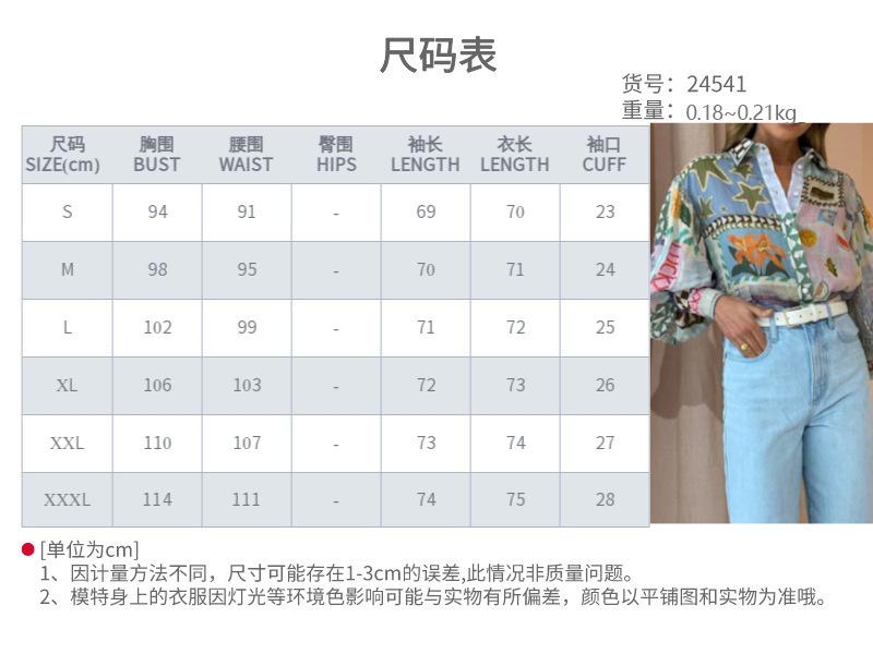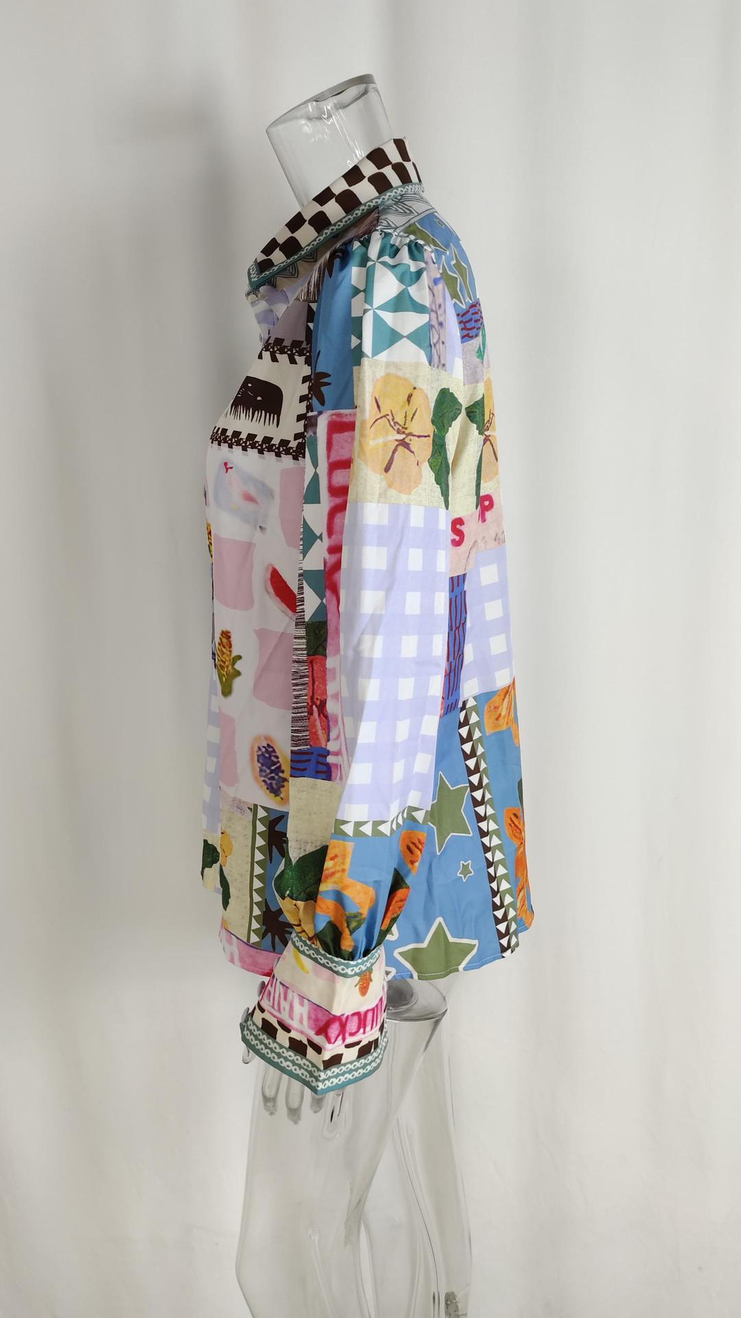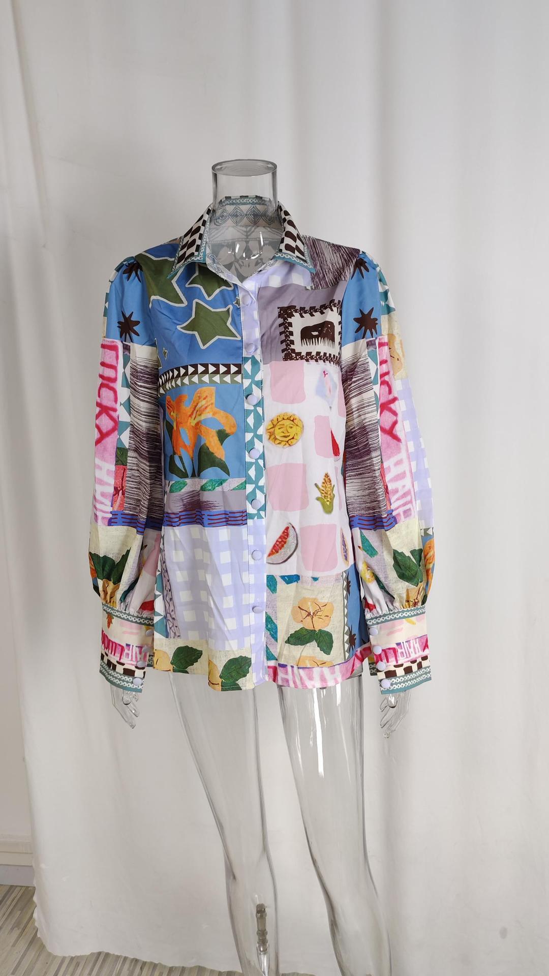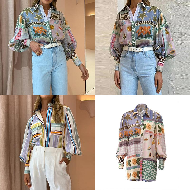 Roupas Femininas Europeias e Americanas Transfronteiriças 2025 Novo Estilo Elegante Lapela Estampada Pintada Camisa Feminina Solta Camisa de Manga Comprida