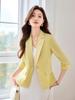 Jaqueta feminina com gola pequena e manga de sete pontas, primavera verão outono 2025, nova moda profissional de lazer elegante e elegante
