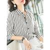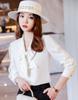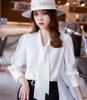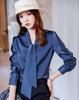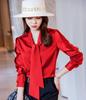Primavera e Outono Novo laço Design francês cetim decote em V camisa de manga comprida Top elegante estilo coreano feminino lote de camisas
