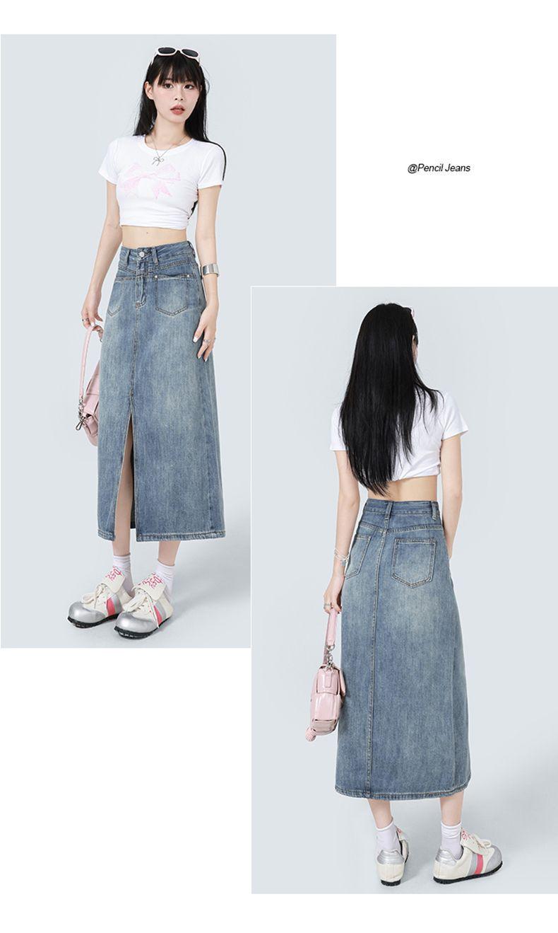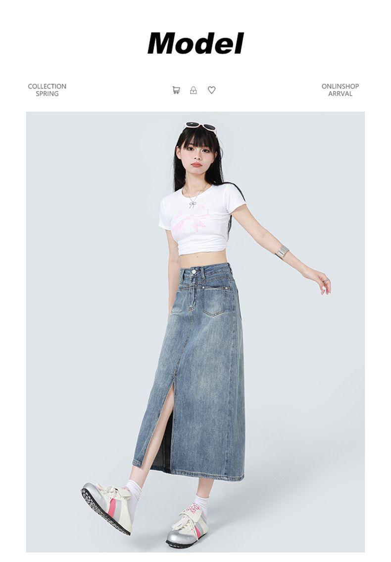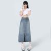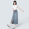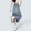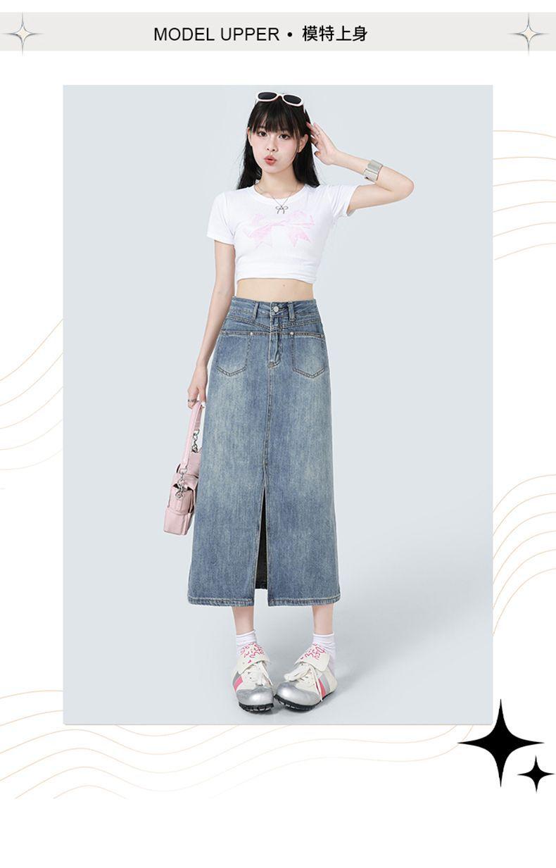 Saia jeans feminina de cintura alta com fenda, nova saia de verão 2025, comprimento médio, formato A, saia pequena para quadril