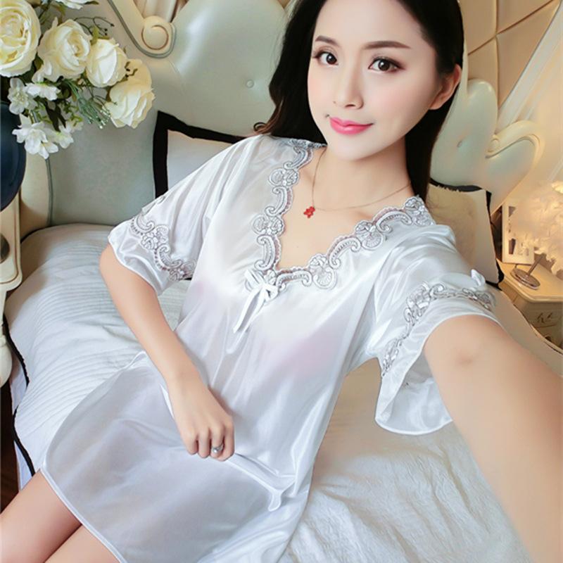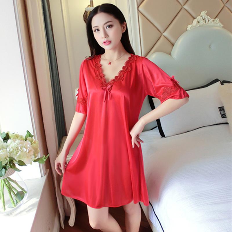 Pijama de Seda Gelo Feminina Verão Sexy Tentação Renda Camisola Plus Size Saia de Seda Gelo Roupa de Casa Atacado