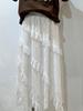 Saia branca de fada doce feminina, nova saia longa de cintura alta, slim fit, linha A, com costura de renda