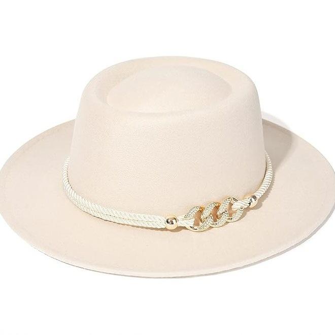 Chapéu de Lã Explosão Transfronteiriço Moda Feminina Elegante Chapéu Coco de Corrente Topo Plano Feminino Francês Chapéu de Jazz Estilo Britânico