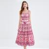 Vestido Sling de Verão Estilo Americano para Menina Quente com Design de Cadarço, Conjunto Feminino de Duas Peças para Mulheres Baixinhas