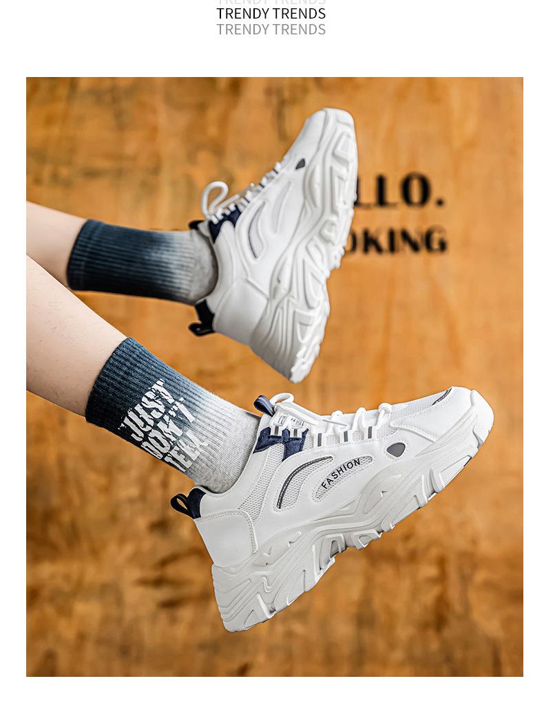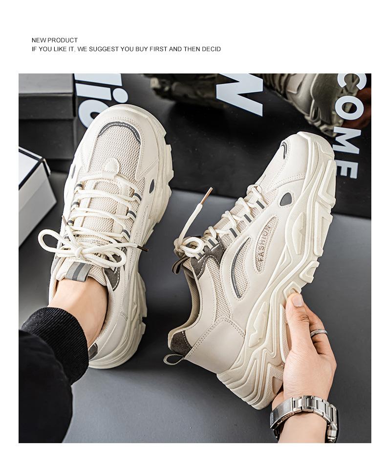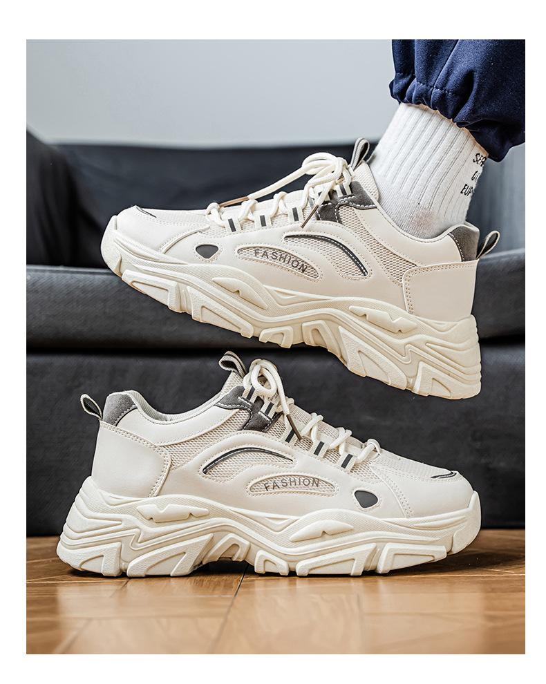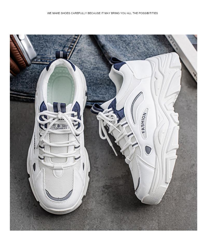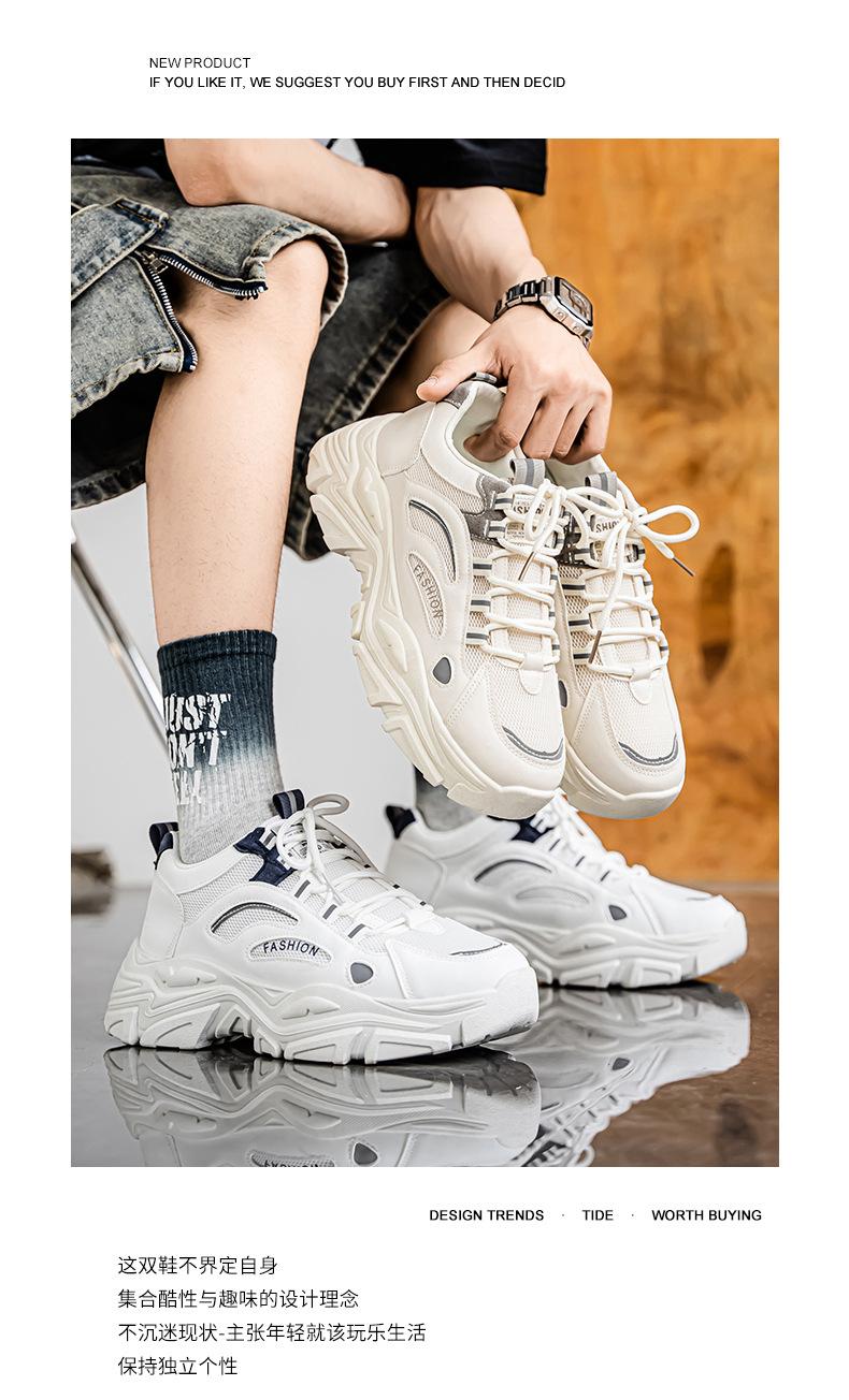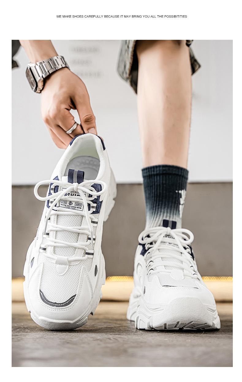 Sapatos Masculinos Primavera e Verão Marca Moderna Combina com Tudo Estudante Lazer Malha Esportivo Corrida Sola Grossa Aumento Branco Torre Sapatos Modernos Antiderrapante