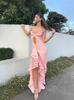 Estilo europeu e americano 2025 verão novo vestido feminino de renda vazada com alças irregulares atacado bota
